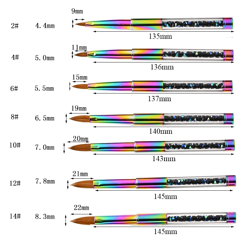 3. Кисти изготовлены из лучших колинских волос. Волоски кисти достаточно прочные, чтобы толкать и формировать акрил, но гибкие и мягкие, чтобы придать штрихи.