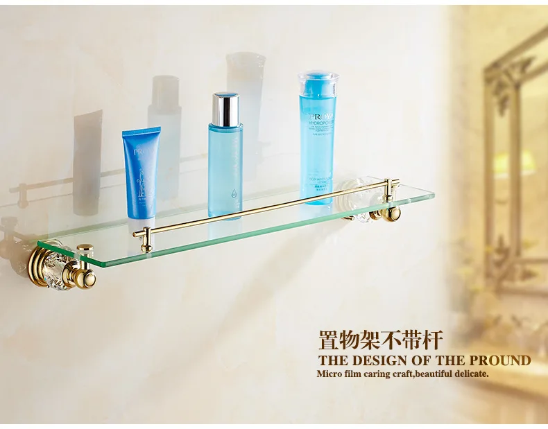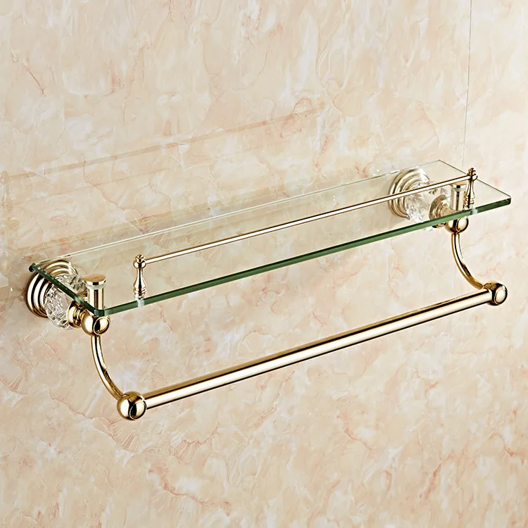 Хрустальная Золотая полка для ванной, стеклянная полка для ванной комнаты, вешалка для полотенец, туалетный столик с удочкой