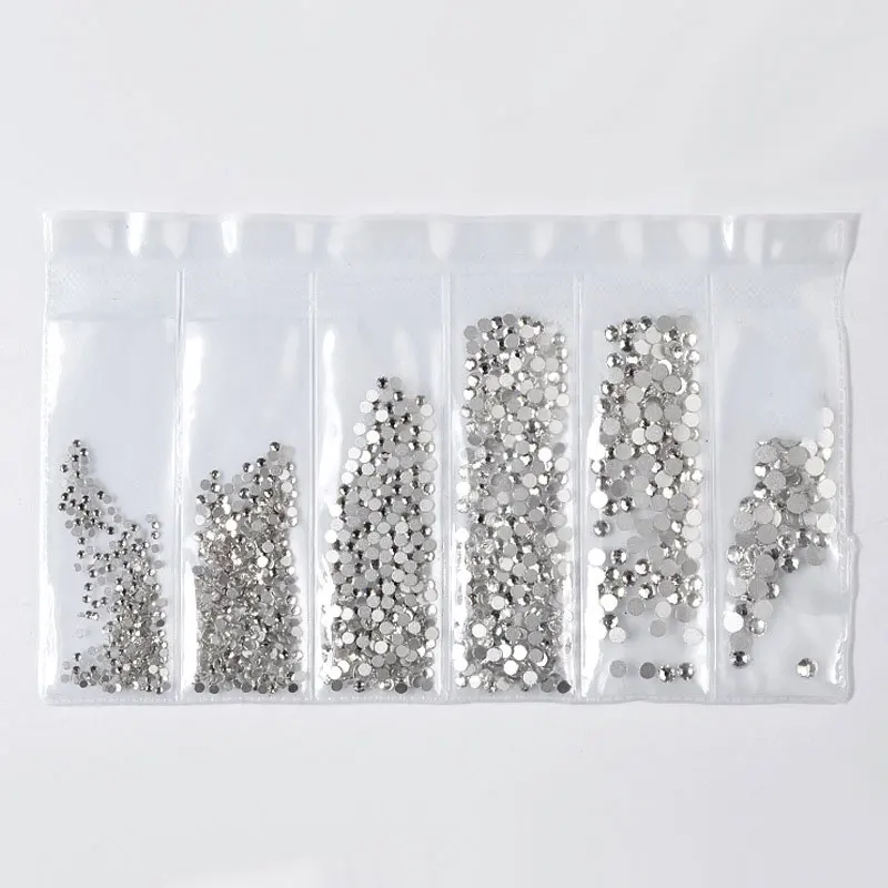Стразы стеклянные для ногтей, 6 размеров, без горячей фиксации