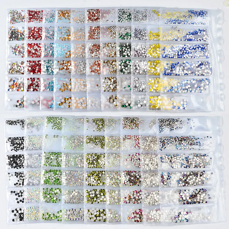 Стразы стеклянные для 3D дизайна ногтей, 31 цвет, SS3-SS10, смешанн...
