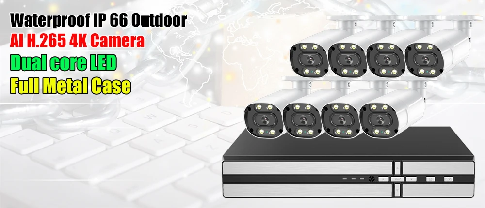 Система видеонаблюдения, 8 каналов, 4K, 3840*2160 HD, POE, NVR