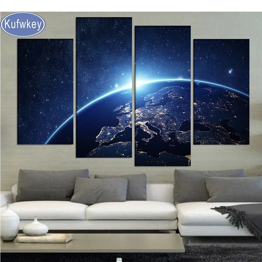 Оптовая продажа земли из космоса 5D,diy, алмазная живопись 4 шт., 3d Вышивка крестом, полная, алмазная вышивка, 3d Алмазная мозаика, украшение,