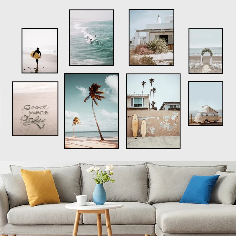 Плакат с изображением пейзажа, путешествий, серфинга, современный пейзаж, Картина на холсте, скандинавский берег, пляж, домашняя комната, Настенный декор, FJ015