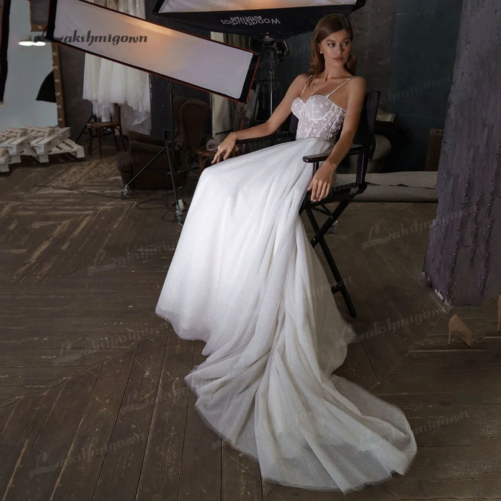 Платье невесты, на бретелях, ТРАПЕЦИЕВИДНОЕ, блестящее