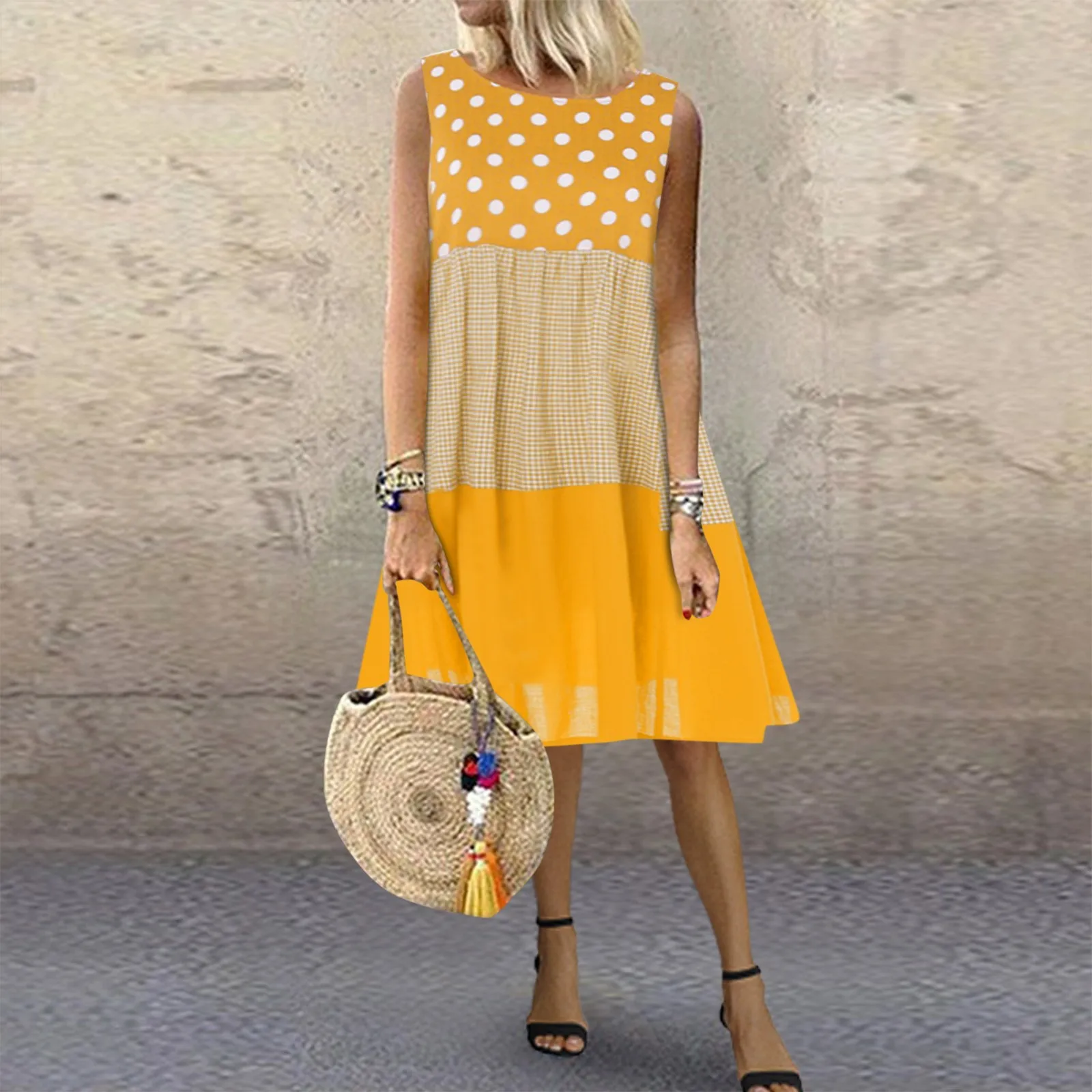 Женское свободное платье в горошек, повседневный плиссированный сарафан без рукавов для отдыха и пляжа, лето
