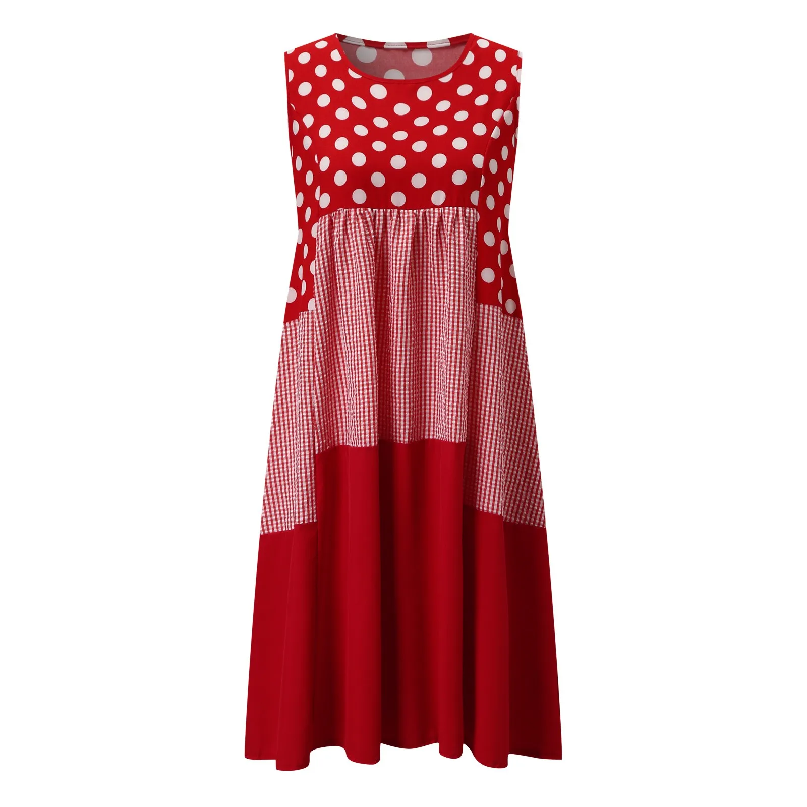Женское повседневное модное Свободное платье в горошек без рукавов с круглым вырезом