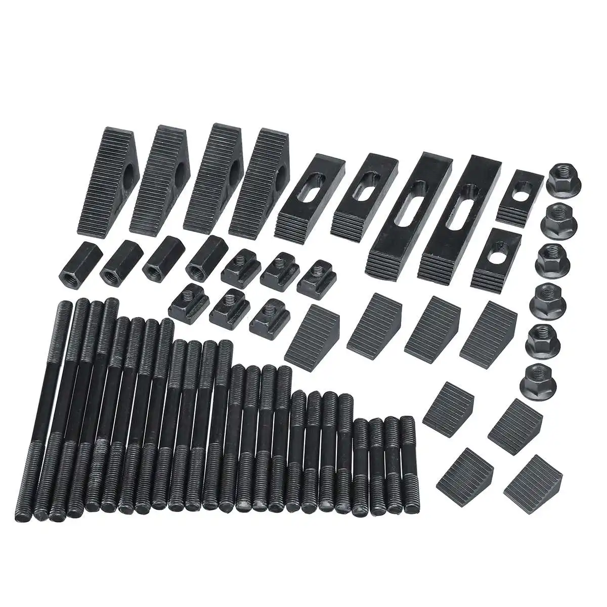58 шт. набор зажимов для фрезерования/сверления M12 шпильки: 14 мм СлотМатериал: углеродистая стальОсобенности:-Экономит время при установке работы на фрезерном станке-Большая Сила зажима, простая конструкция и простота использования.-Он в основном используется для блокировки общих фрезерных станков, обработки на ЧПУ и различных металлических деталей.Посылка24 шпильки6 х гайки6 фланцевых гаек4 х соединительные гайки6 шаговых зажимов12 шаговых блоков1 х пластиковый кронштейн