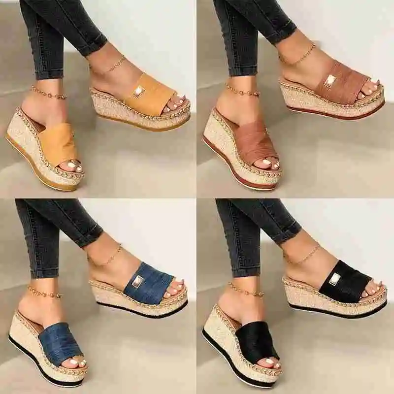Летние дешевые женские босоножки на танкетке, туфли на высокой танк...