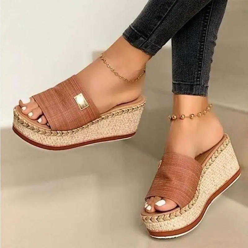 Летние женские сандалии на клиновидной платформе; Вьетнамки; Мягкая...