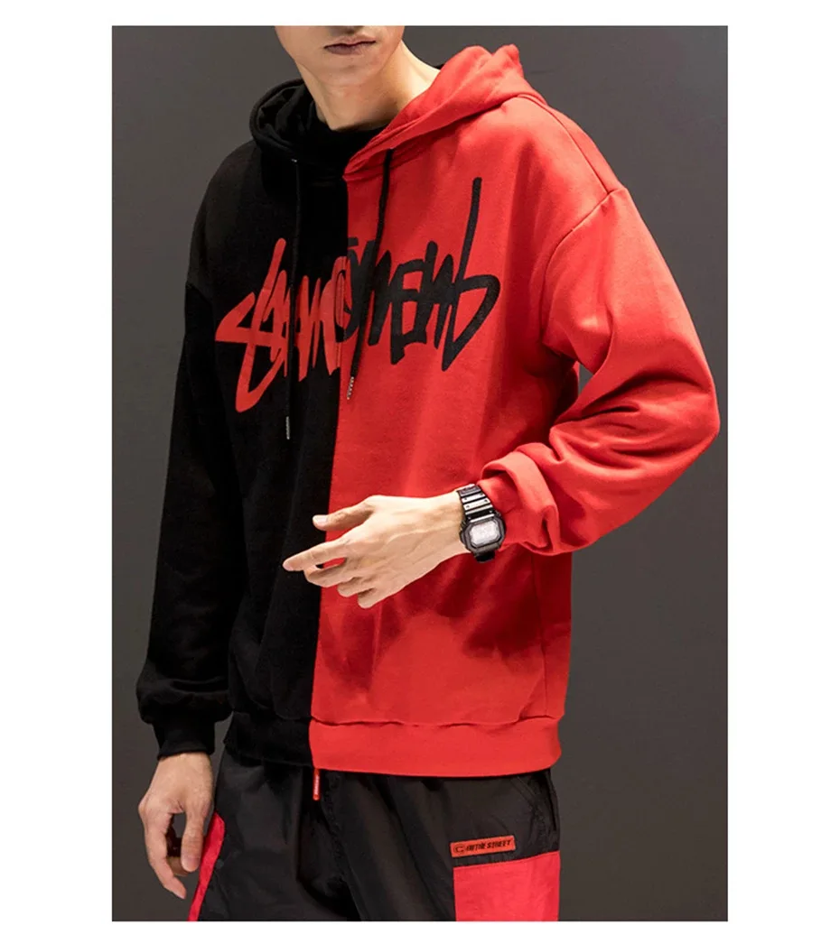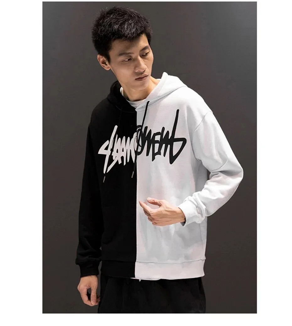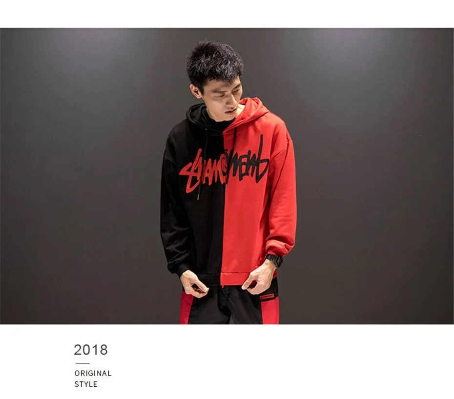 Мужские толстовки в стиле хип-хоп, демисезонные Топы с капюшоном, свободные, повседневные, с блокировкой цветов, с длинным рукавом, спортивные, уличные