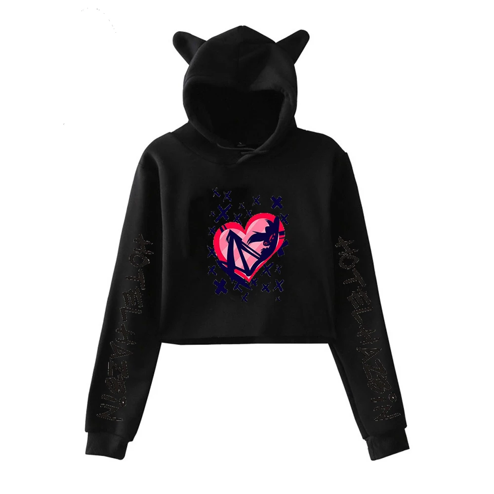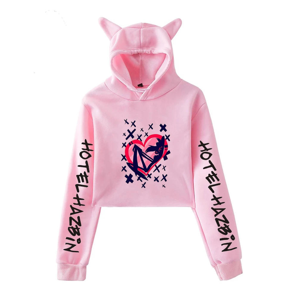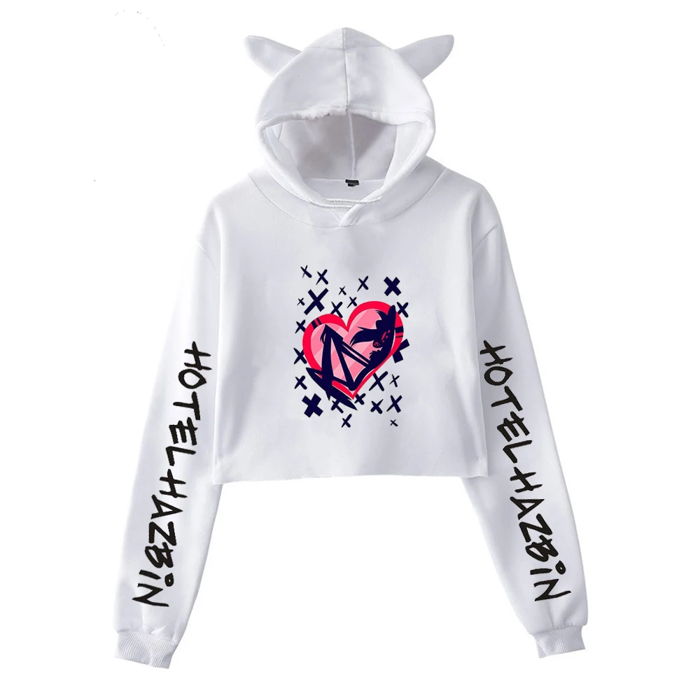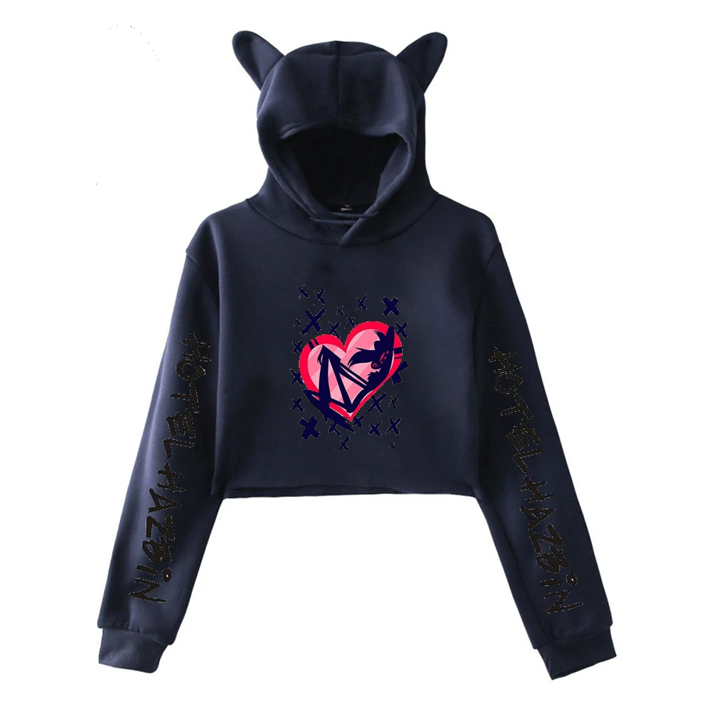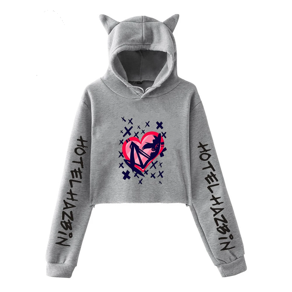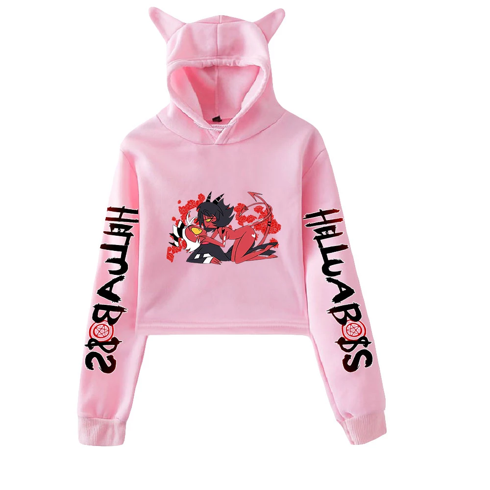 Helluva принт Boss Кот укороченные толстовки для девочек с длинным рукавом пуловер с капюшоном короткие топы милые сексуальные свободные Стильные топы 2021 одежда