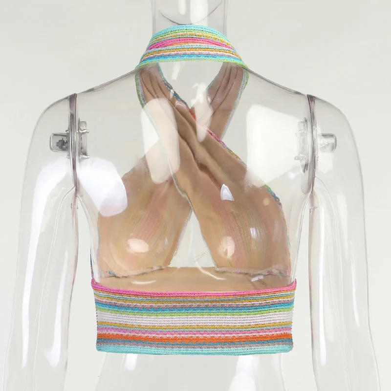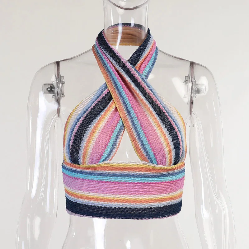 Топ женский в радужную полоску, без рукавов, с открытой спиной и от...