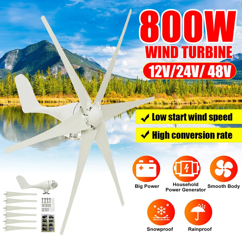 Ветряная турбина с 6 лопастями, 800 Вт, 12 В, 24 В, 48 В