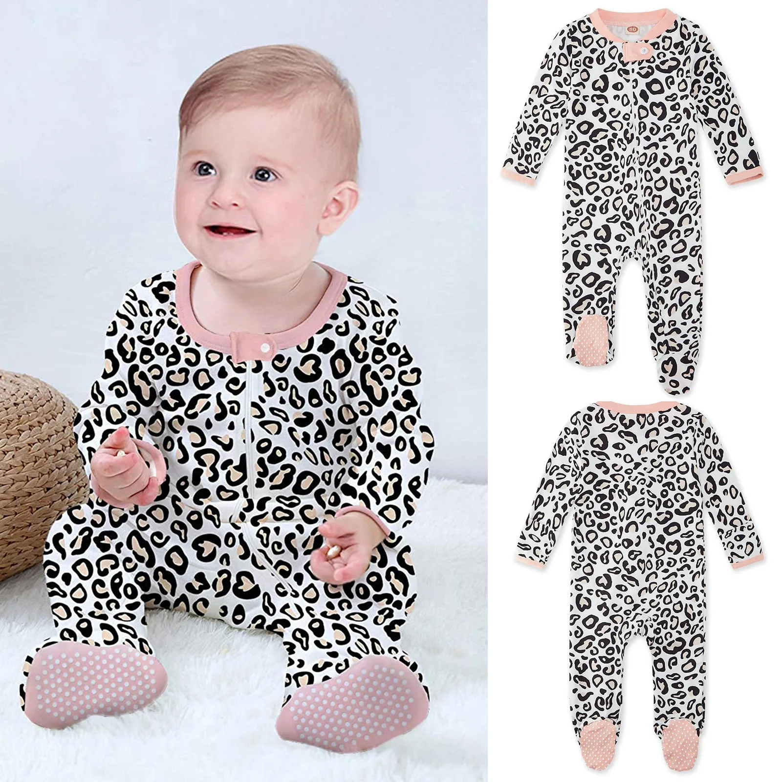 Пижама с леопардовым принтом для маленьких мальчиков и девочек Комбинезон на молнии