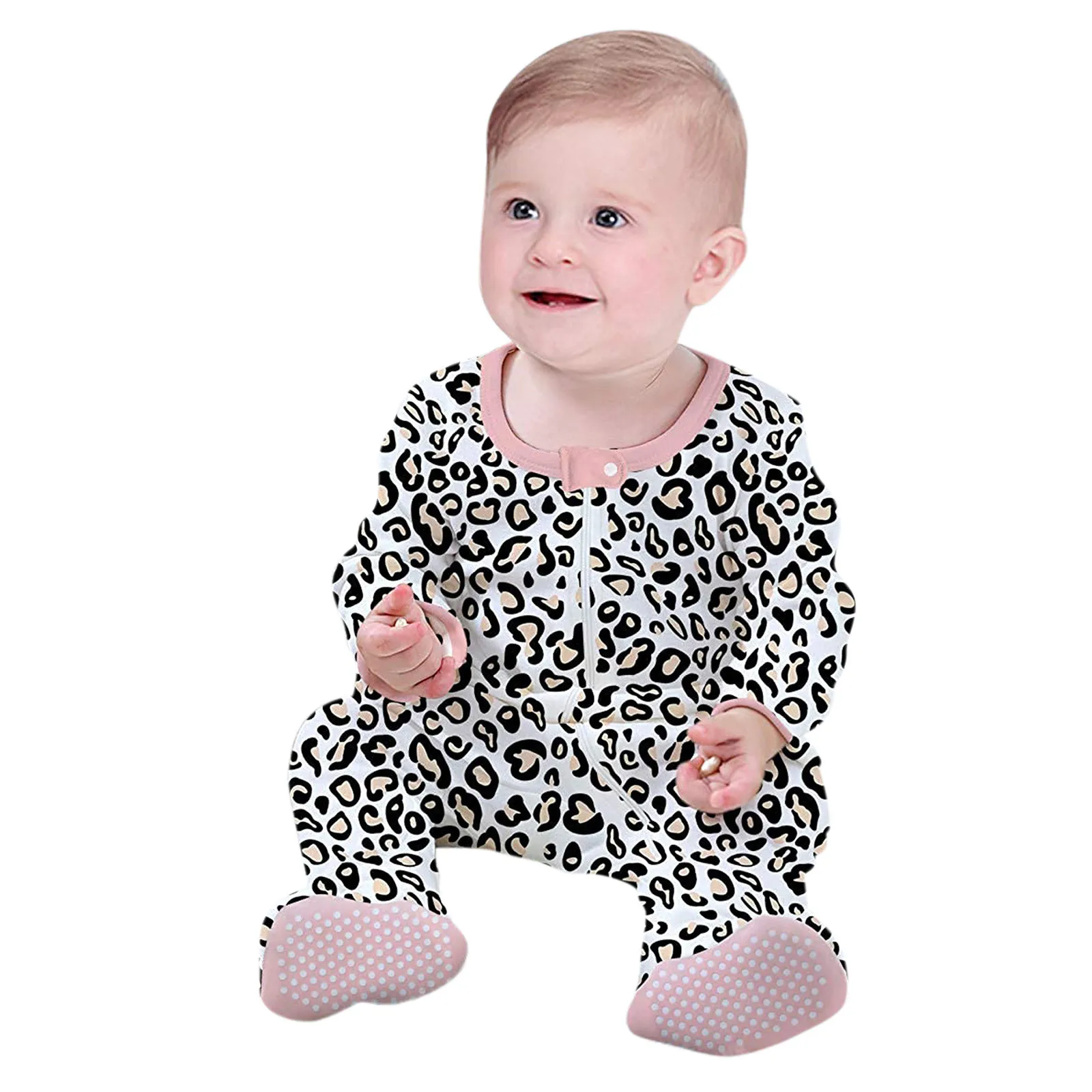 Комбинезон детский, с леопардовым принтом, на молнии, нескользящий, 2021