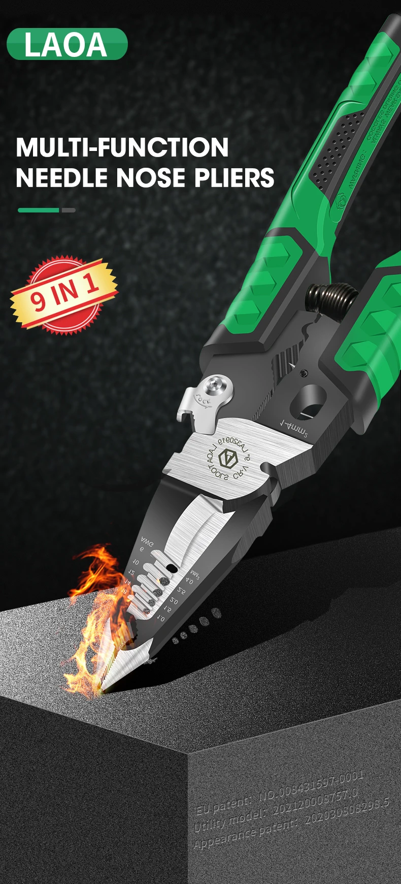 Плоскогубцы LAOA 9 в 1, устройство для зачистки проводов и клемм