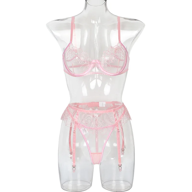 1 женский кружевной бюстгальтер + 1 трусики + 1 подвязка