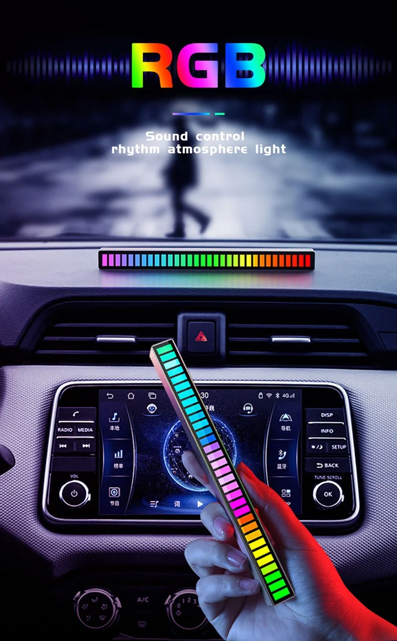 Светодиодная лента для автомобиля, с регулировкой звука, RGB-подсветкой, USB-зарядка