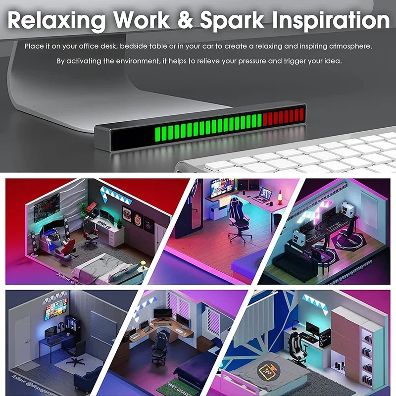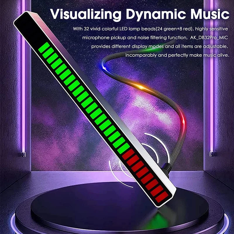 Встроенный высокочувствительный микрофон (Голосовое управление)32 красочные лампы бусины8 режимов отображения регулируется8 цветов регулируетсяПоставляется с AGC автоматическим контролем усиленияЭксклюзивный интеллектуальный алгоритм деnoising, может использоваться в шумной средеПараметры продукта:Входное напряжение:> 5 в постоянного тока 1AВходной интерфейс: MicroUSBЧастотная характеристика: 50-16 кГцРазмеры (длина, ширина и высота): 181*16*18,5 ммВес нетто: 86 гОптические характеристики (длина волны):Красный: 620-625 нмЗеленый: 520-525nmСиний: 460-470нмОптические характеристики (яркость)Красный: 450-550mcdЗеленый: 1300-1500mcdСиний: 350-400mcd