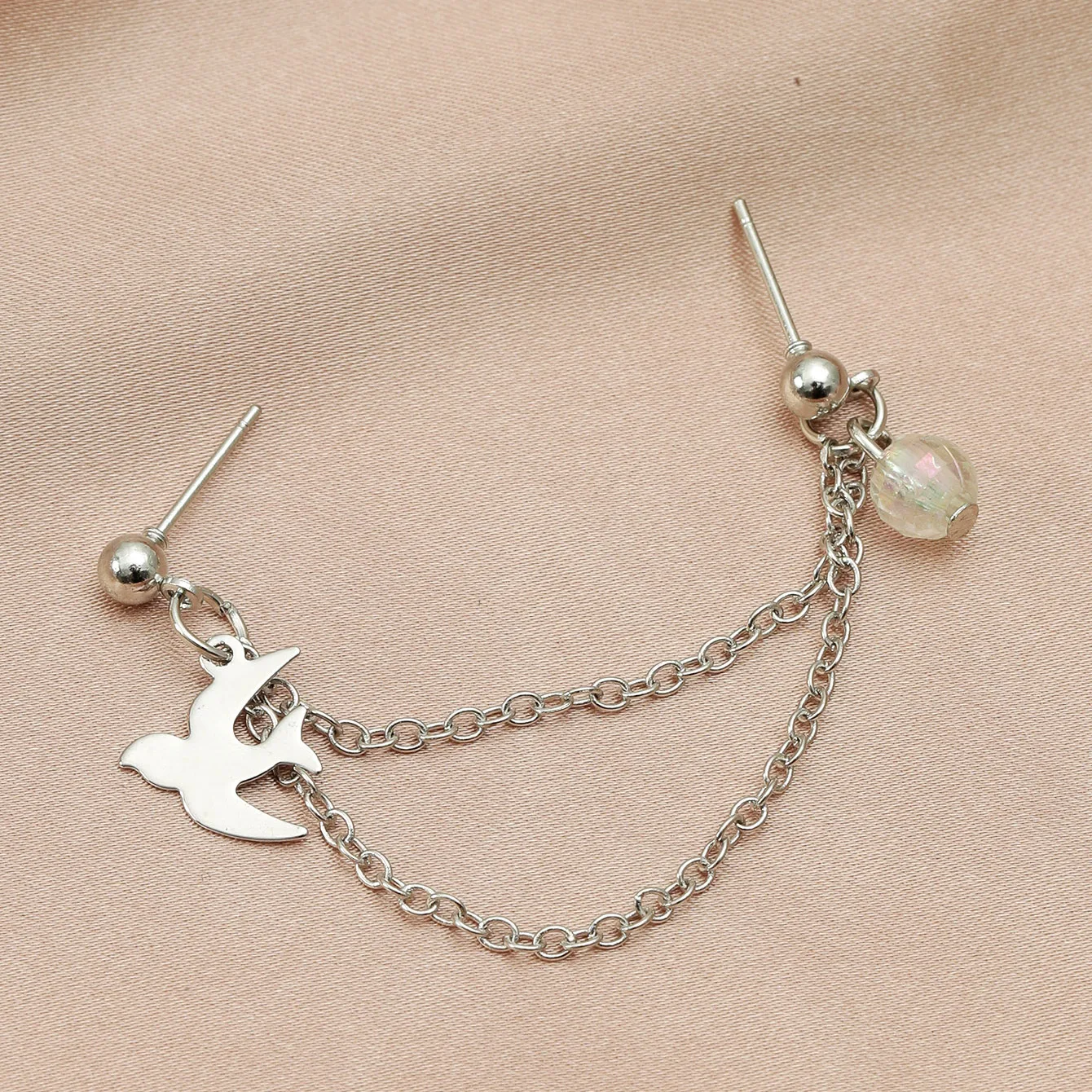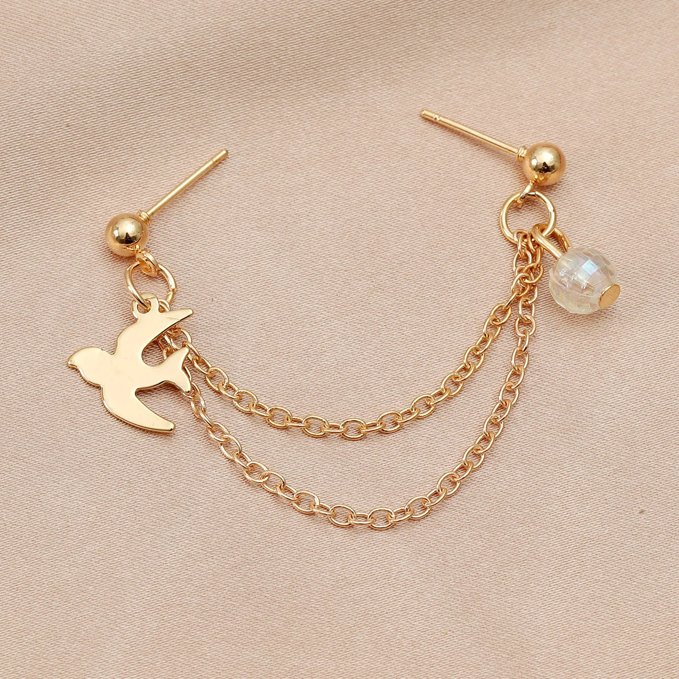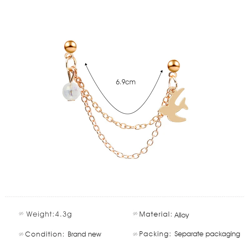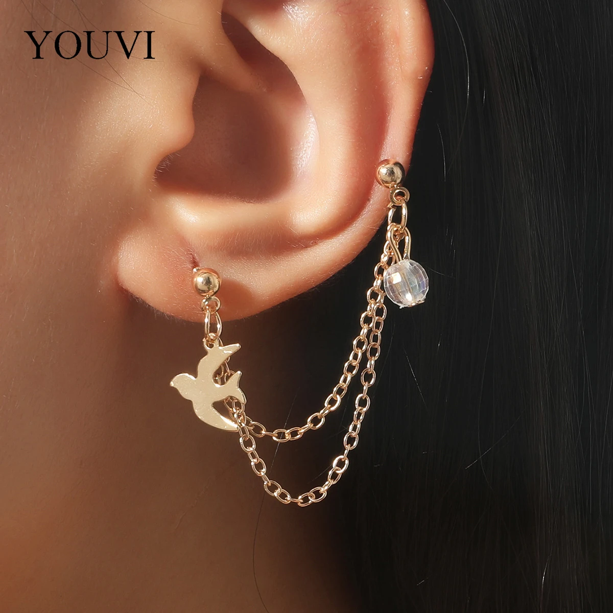 Женские металлические серьги-гвоздики YOUVI Goth в виде птиц, корейские модные серьги с металлической цепочкой, серьги-каффы 2021