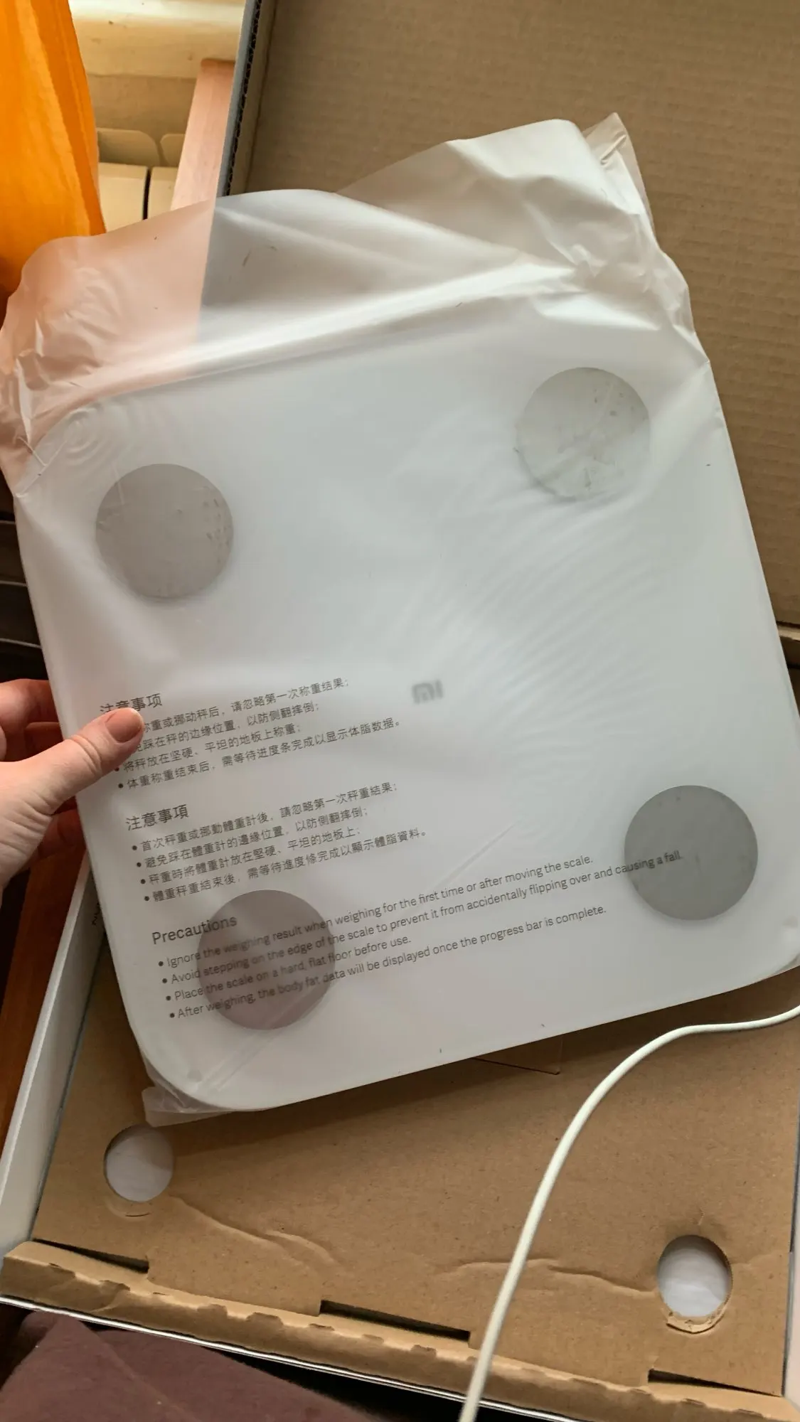 весы пришли целые, упакованы хорошо,, батарейки в комплекте , измеряют вес, ИМТ, массу жира, мышц, сколько воды в организме и даже биологический возраст, с телефоном конектятся легко через приложение.