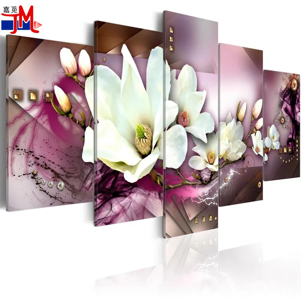 5 шт.компл. красная маковая белая цветочная картина из страз, Настенная картина, вышивка орхидеями, Алмазная мозаика, выберите цвет и размер, бусины