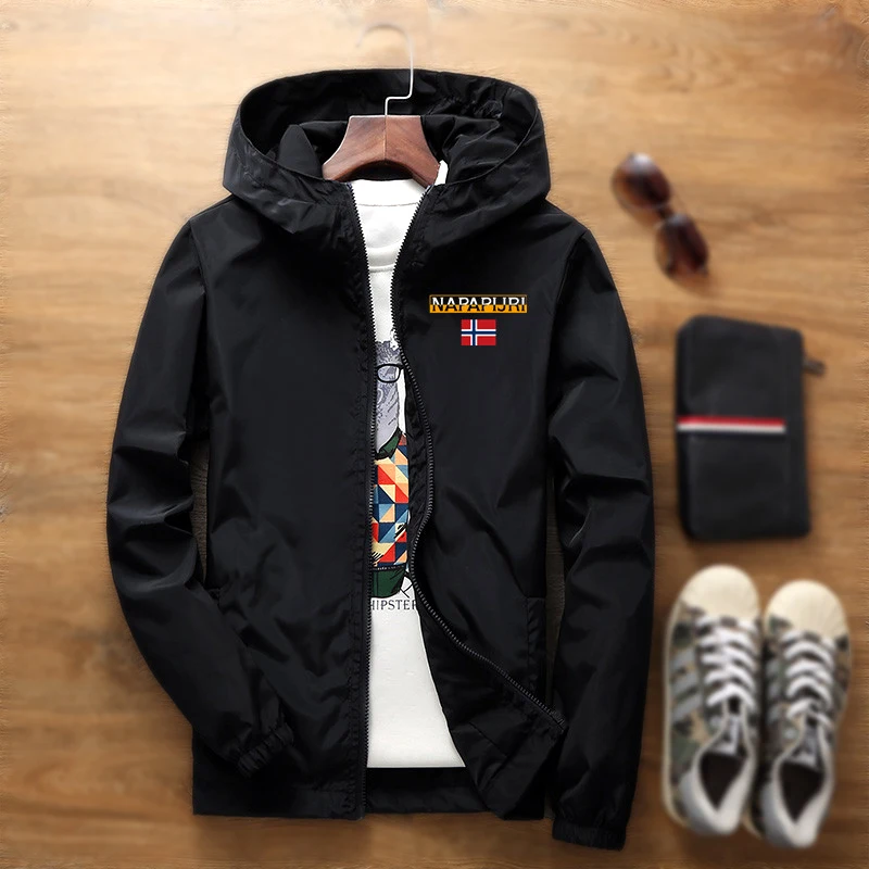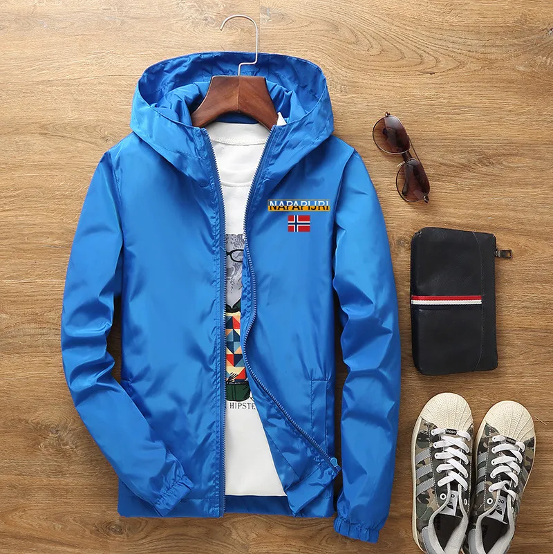 Ветровка мужская с капюшоном, тонкая куртка на молнии, повседневная...