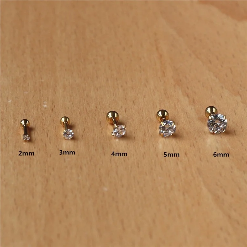 Серьги-гвоздики из нержавеющей стали 316l с фианитами, 2-8 мм