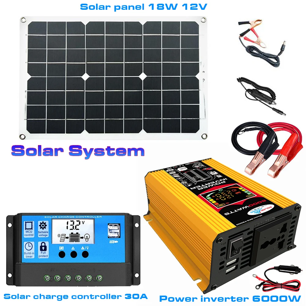 Система солнечных панелей 110 В220 В, 18 В1, 8 Вт, 30 А, контроллер заряда, 6000 Вт, автомобильный комплект инверторов солнечных батарей, полный комплект для создания энергии