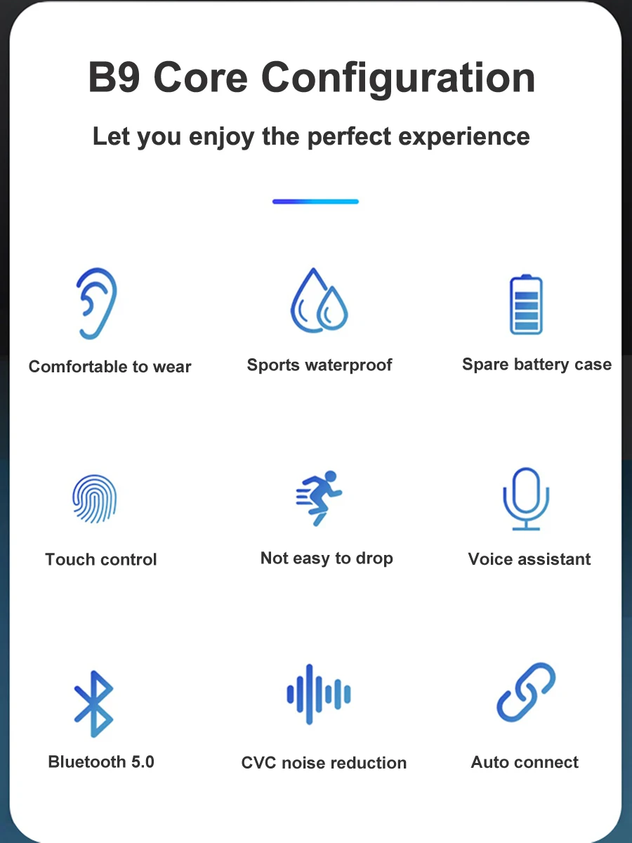 B9-TWS bluetooth-гарнитура * 2 (левый и правый уши)
