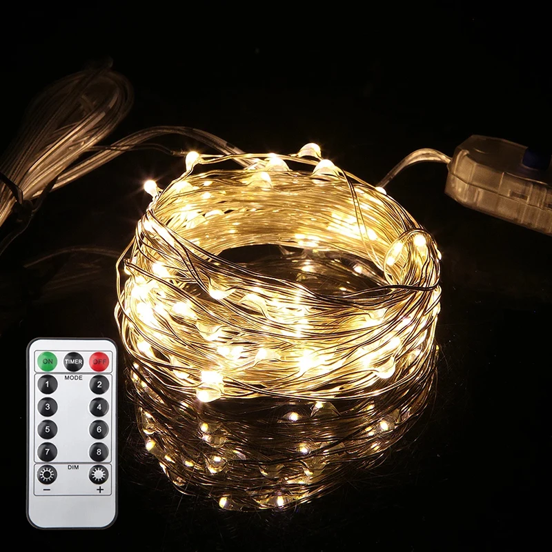 11. Посылка: 1 шт х 50/100/200LED USB серебряной проволоки светильник + пульт дистанционного управления Управление(Без батареи CR2025)