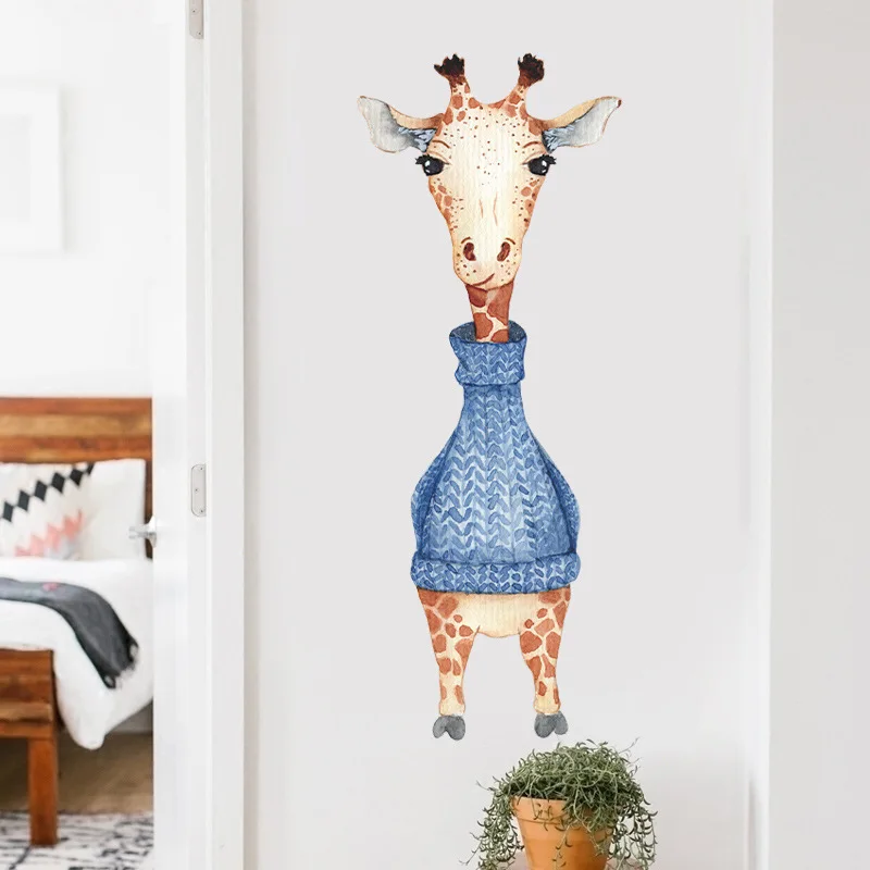 Самоклеющиеся обои с изображением мультяшного полярного медведя, могучего тигра, слона, мультяшного жирафа, детские наклейки на стену