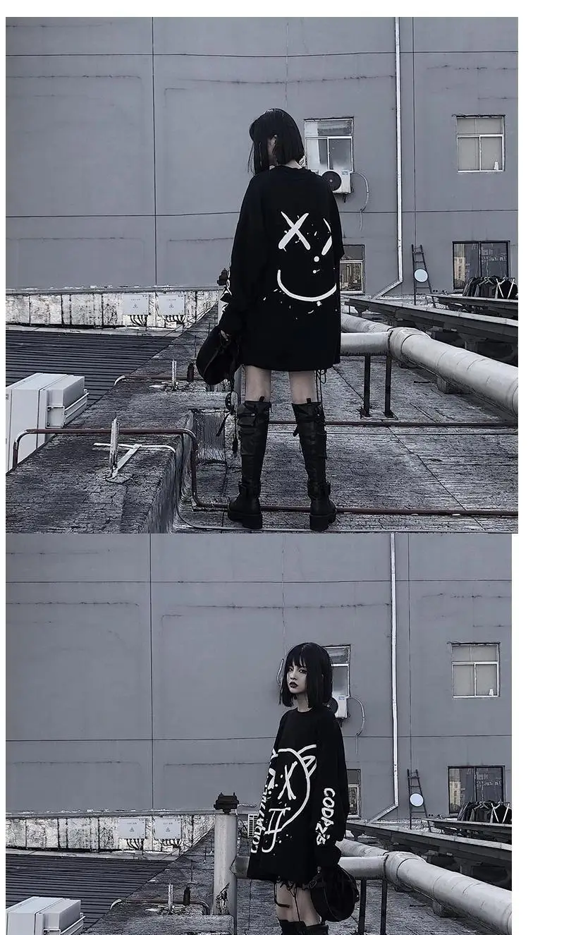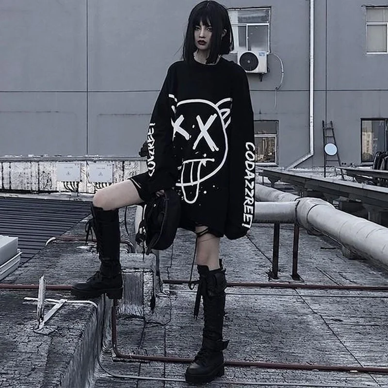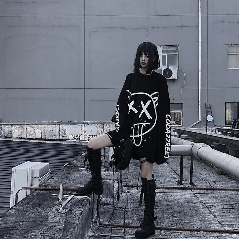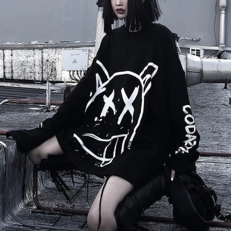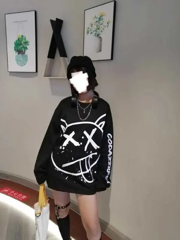 Футболка женская FERNAN, в стиле хип-хоп, с граффити, с длинным рукавом, в Корейском стиле, 2021, топ в готическом стиле
