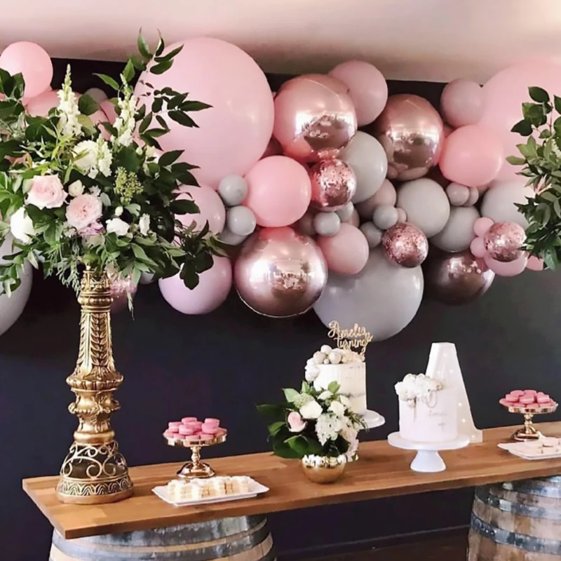 Воздушные шары арочный комплект, серые, розовые, хромированные возд...