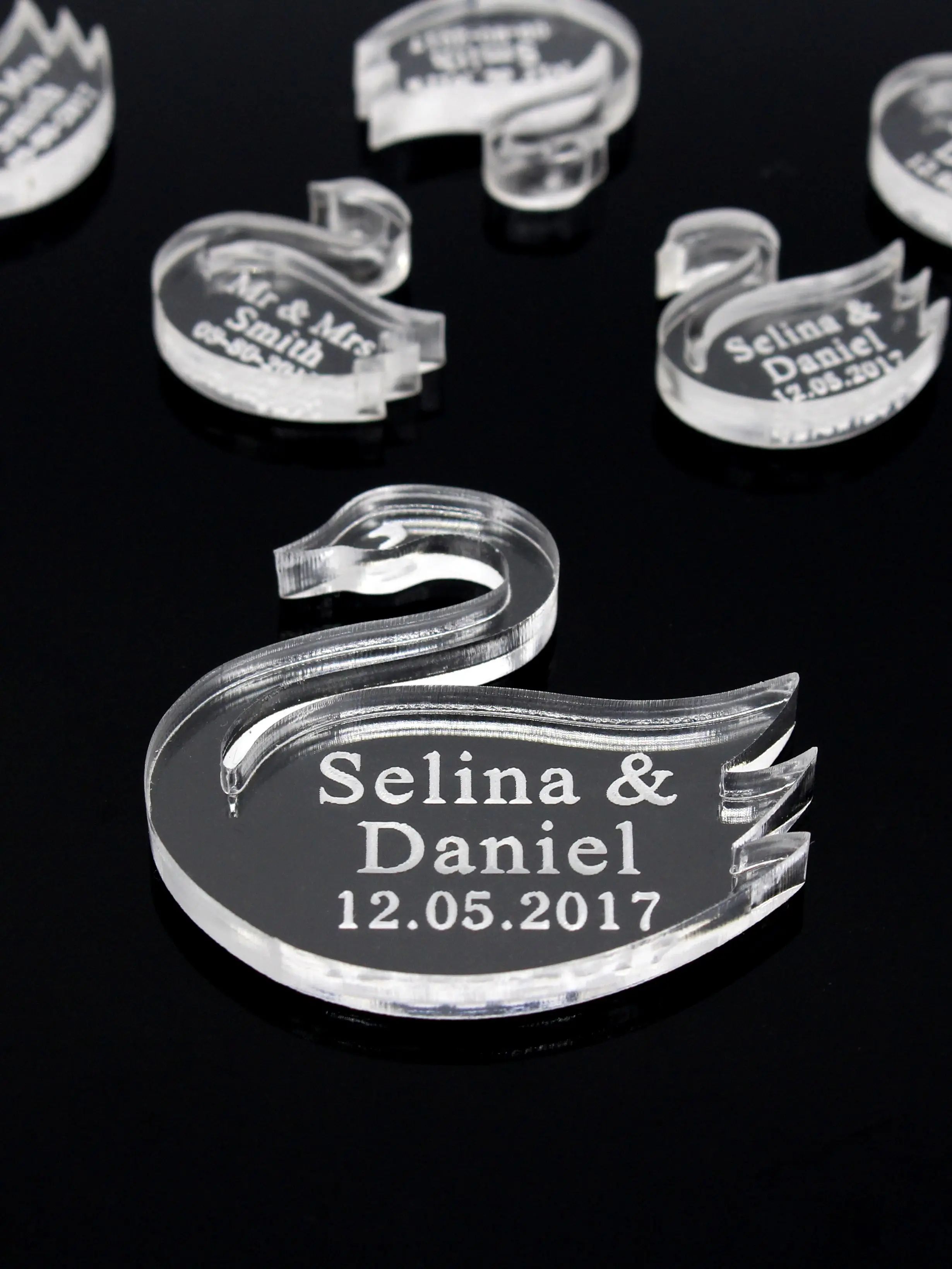 Категория: украшение стола (бирки)Материал: 3 мм толстый акрилФорма: лебедьКоличество: 50 шт.