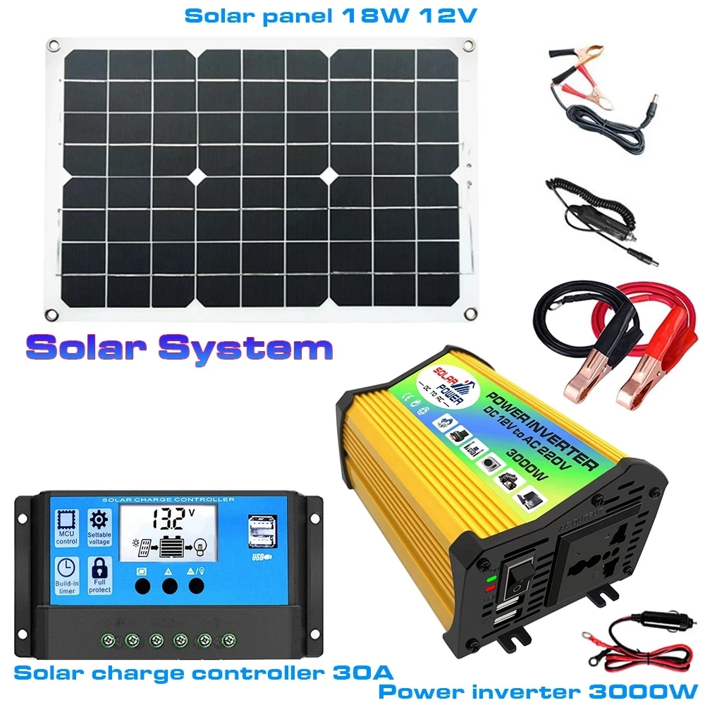110 В220 В система солнечных панелей 12 в 1 8 Вт Панель солнечных батарей 30 А контроллер заряда 3000 Вт автомобильный комплект инвертора солнечных батарей полный комплект для создания энергии