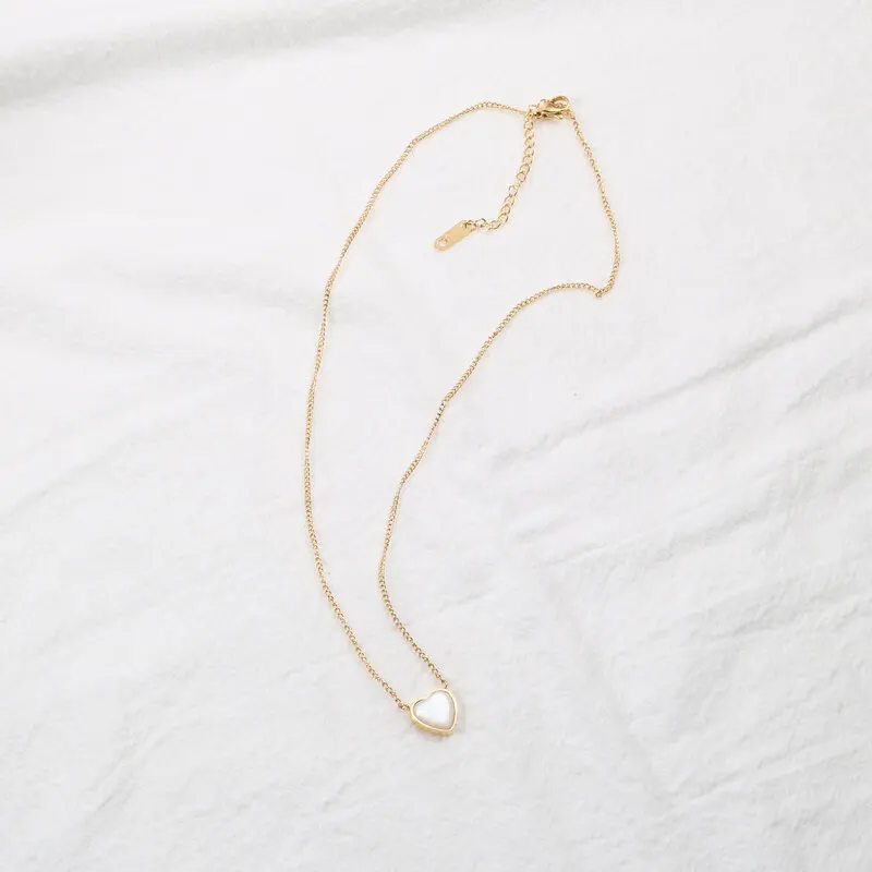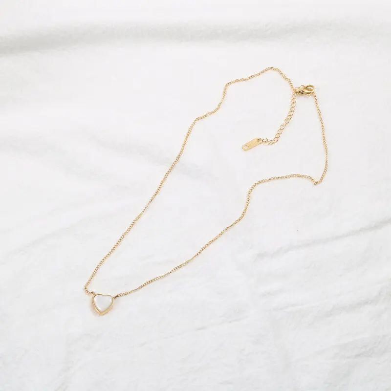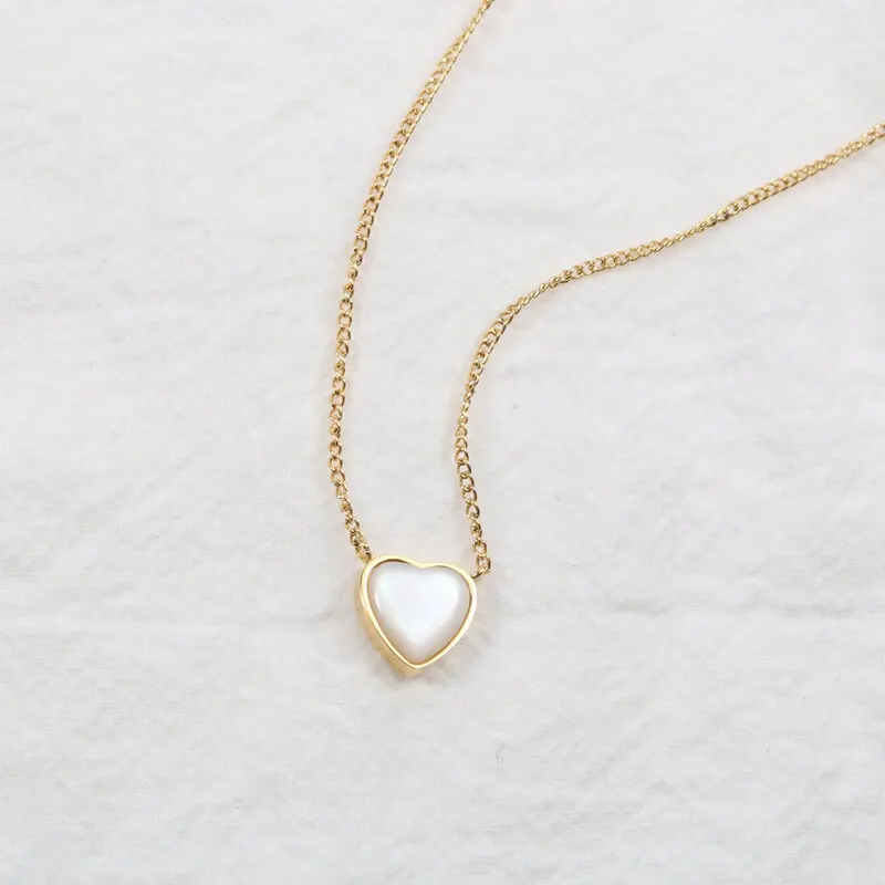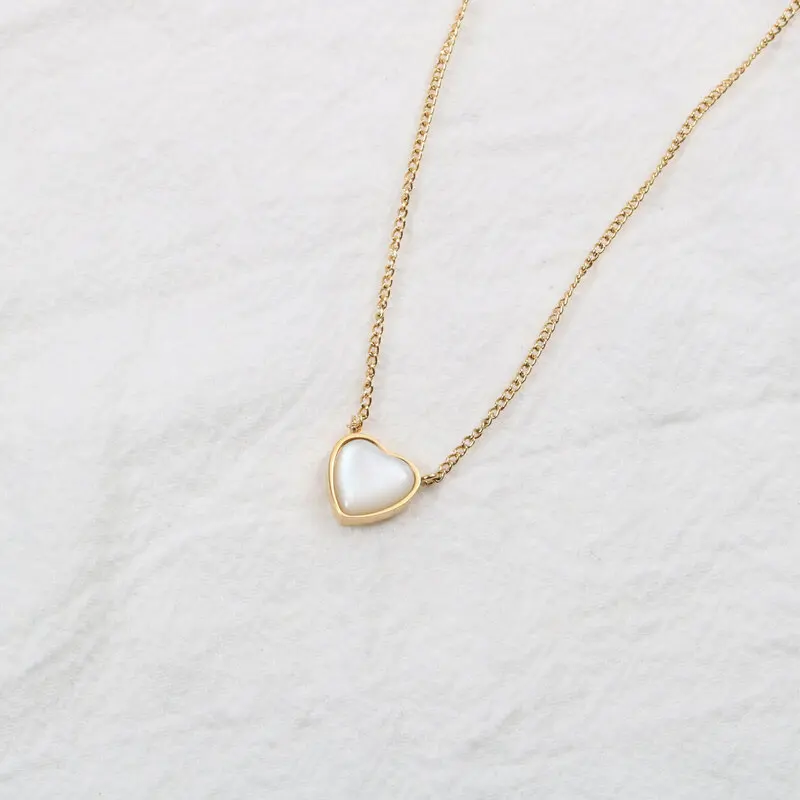 Ювелирные изделия Joolim PVD с золотой отделкой, нежное Персиковое сердце, подвеска с белой ракушкой, стильное ожерелье из нержавеющей стали
