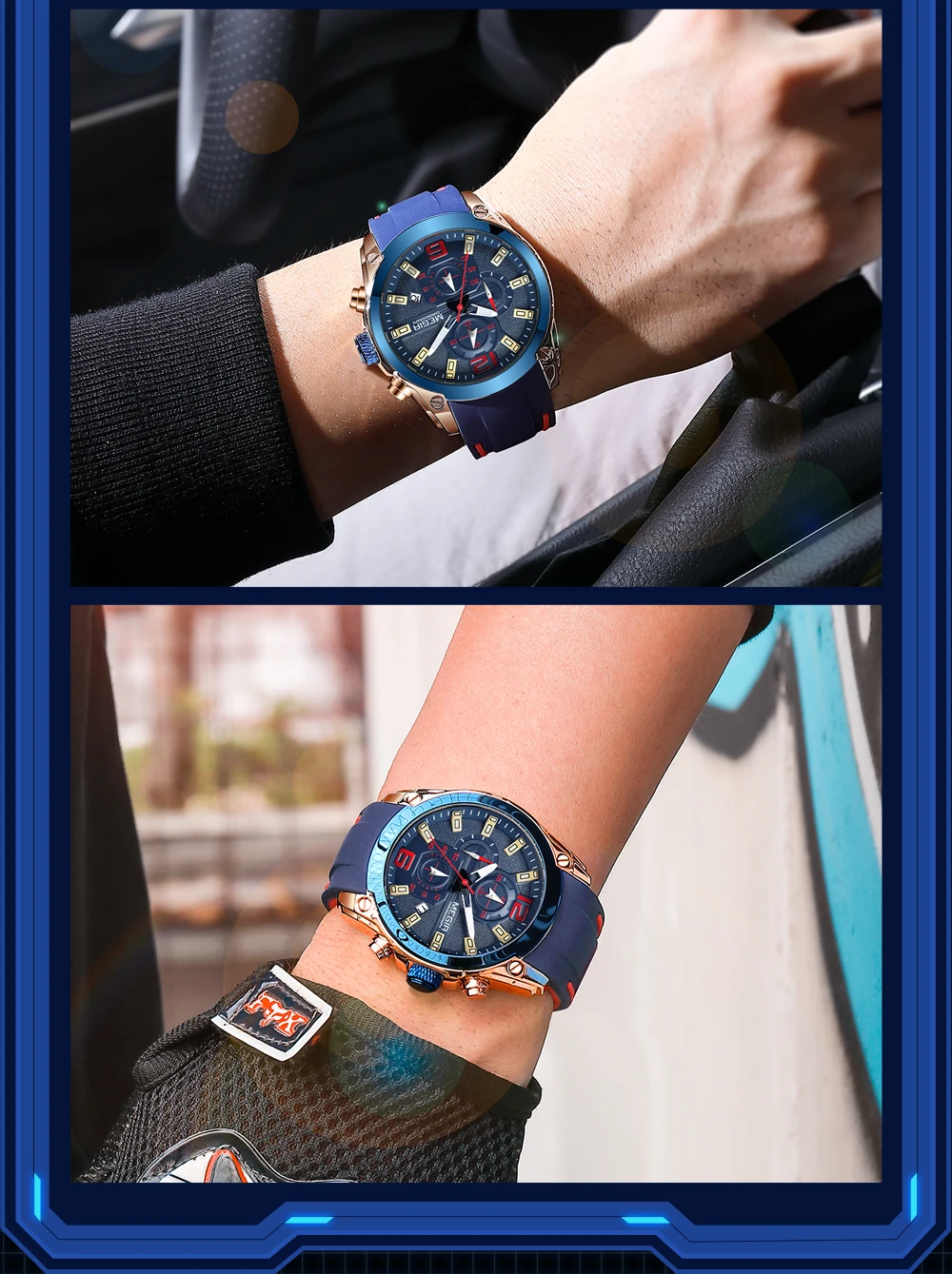 Мужские водонепроницаемые кварцевые часы с календарем и хронографом