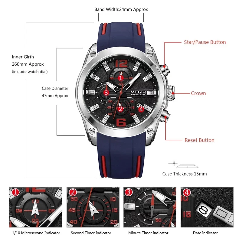 Часы MEGIR Мужские Наручные с хронографом, брендовые водонепроницае...