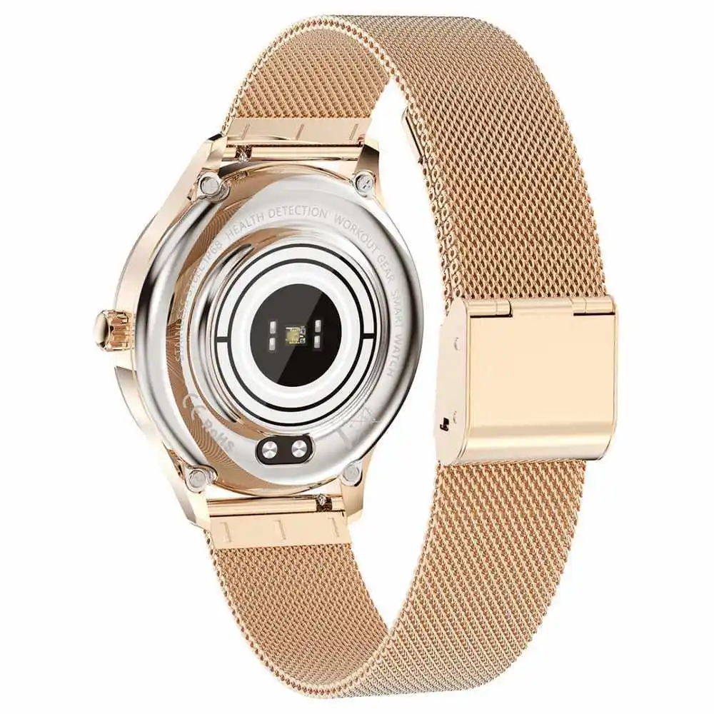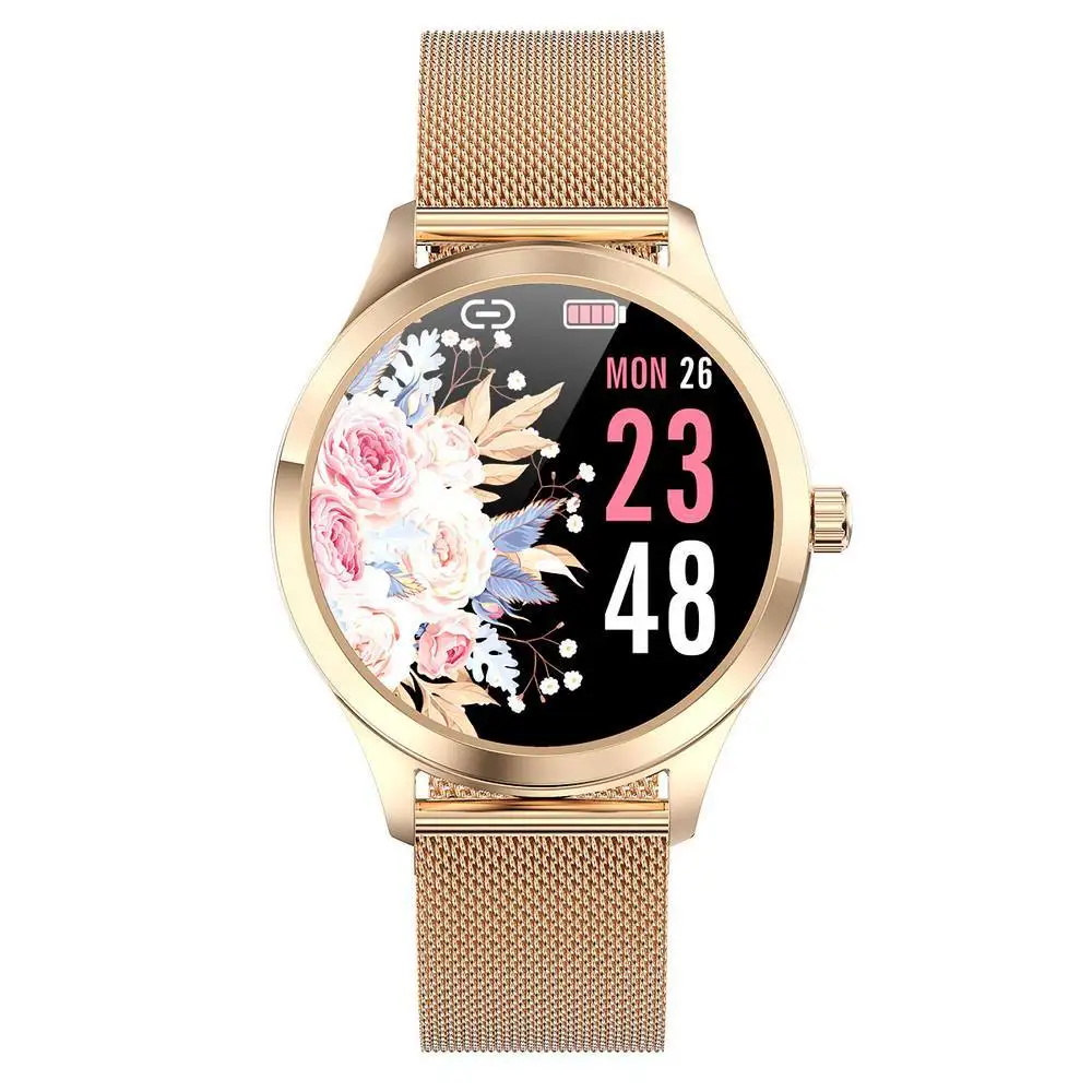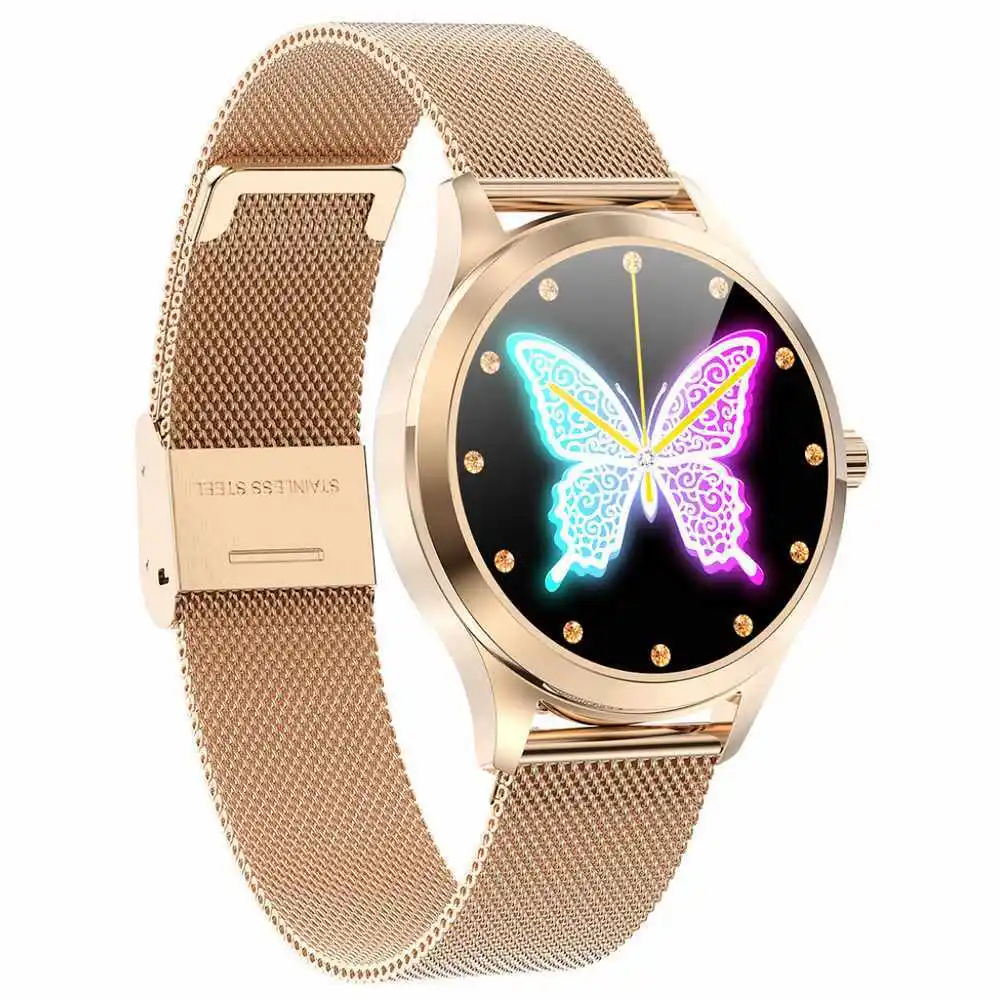 Smart Watch KingWear LW07 - элегантные женские смарт часы. В дополнение к стандартным функциям добавлен датчик уровня кислорода, изменен дизайн, увеличена емкость АКБ. Читайте сообщения прямо на экране часов, отклоняйте нежелательные звонки, настройте будильник и напоминания, мониторьте физическую активность, измеряйте пульс и уровень кислорода в крови. Пользоваться часами стало еще удобнее - теперь вся поверхность дисплея сенсорная. Характеристики KingWear LW07Основная информацияТип устройства: смарт часыСовместимость с устройствами на платформе Android и iOSРекомендуемое приложение: FitCloudProПроцессор и памятьЧип RTL8762CKОперативная память RAM: 64 KBЭкран и интерфейсТип: сенсорный цветнойДиагональ: 1.09'Разрешение, px: 240*240Управление: тачскрин (full touch screen), + 1 механическая кнопкаСменные предустановленные экранные заставкиПоддержка смены заставок через приложениеКоммуникация и передача данныхGPS трекинг (работает при наличии соединения со смартфоном)Bluetooth 5.0Телефон: нетФункциональные возможностиЧасы (синхронизируемые)Поддержка уведомлений (входящий звонок, SMS, почта, WhatsApp, Viber, Skype, Telegram, WeChat, Facebook, Twitter, LinkedIn, Instagram, Messenger, Snapchat, QQ, Line, Kakao Talk, напоминания)Отображение текста полученных сообщений (SMS, мессенджеры)Датчик положения G-sensor triaxialДатчик сердечного ритма HRS3300Датчик измерения давленияДатчик измерения уровня кислорода в кровиВозможность непрерывного мониторинга пульсаСекундомерВыбор спортивного режимаШагомерСчетчик калорийИзменение дистанцииНастройка целей физической активностиМонитор сна"Антипотеряшка"ВиброБудильникУправление камерой смартфонаУправление аудио плееромАктивация дисплея при взмахе запястьяКонструкция, элементы питания и комплектация*Корпус: стальВлагозащищенность: IP67**Размеры корпуса, мм: 40.5*39.5*10.5Ремешок: металлический браслет с регулировкой по обхвату запястьяАккумулятор: Li-Pol, 200 mA*hРазьем зарядного устройства: магнитная контактная группаВес в сборе, г: 68Комплектация: часы, кабель для зарядки, инструкция на английском языке, коробкаГарантийный срок 6 месяцев