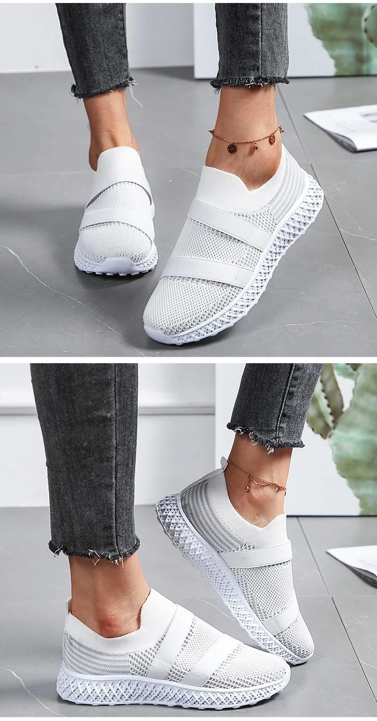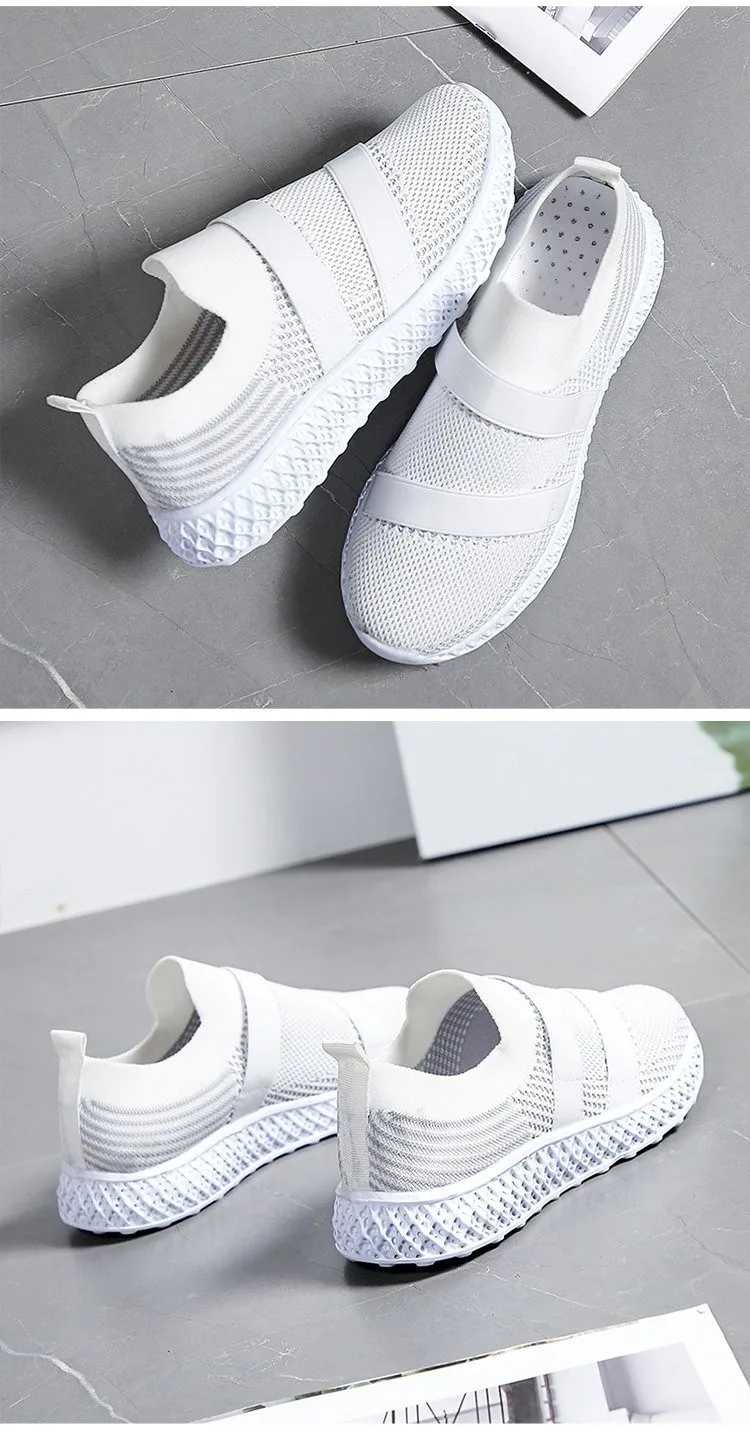 Кроссовки женские легкие без шнуровки, повседневная обувь на плоской подошве, белые, лето-осень 2021