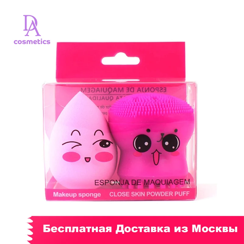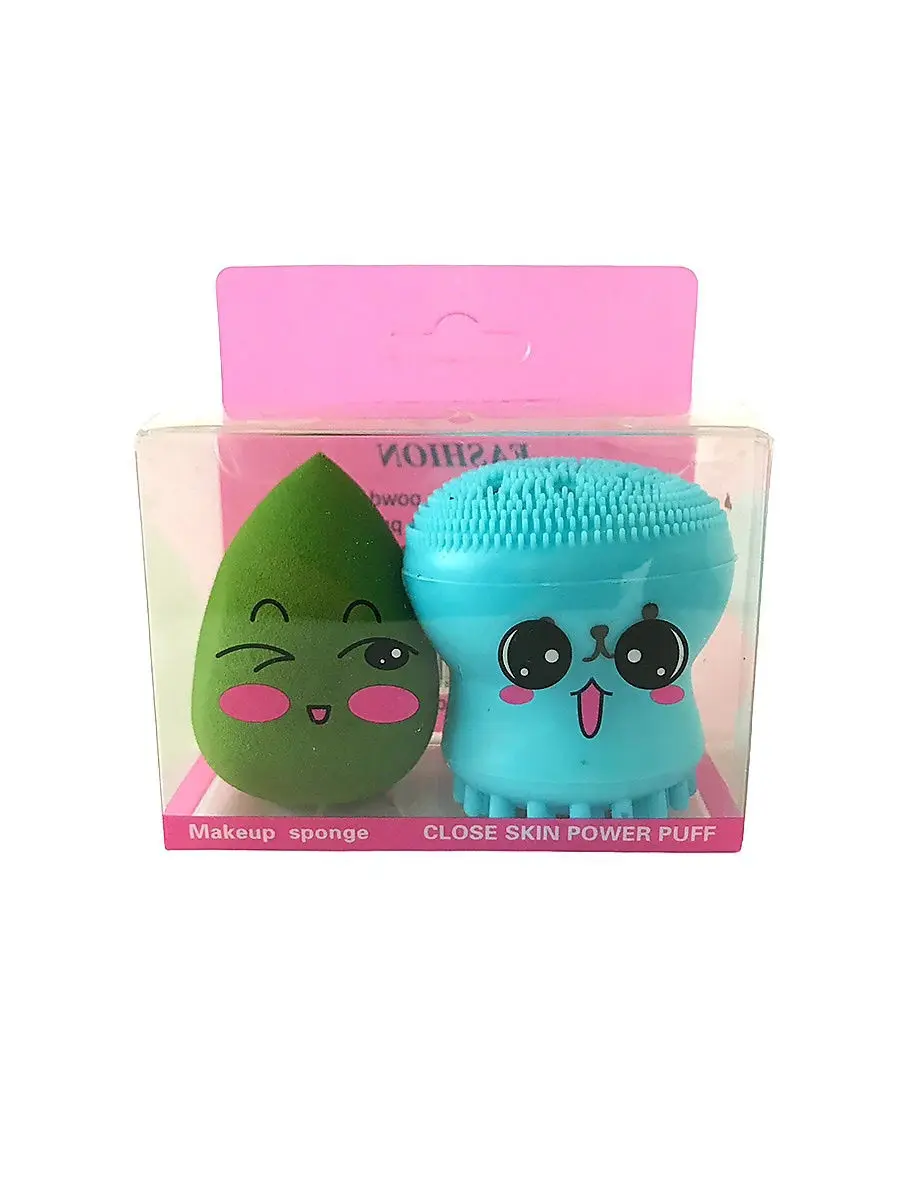 Набор (бьюти блендер для макияжа + щетка для умывания) идеальный тон + тщательное очищение. Цвет набора случайный.