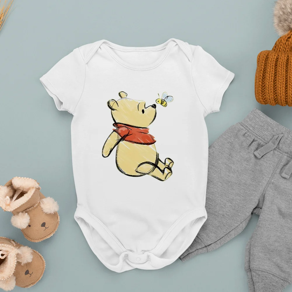 Комбинезон для мальчиков и девочек, Винни-Пух, милый медведь, короткий рукав, уличная одежда в стиле Харадзюку, боди для младенцев