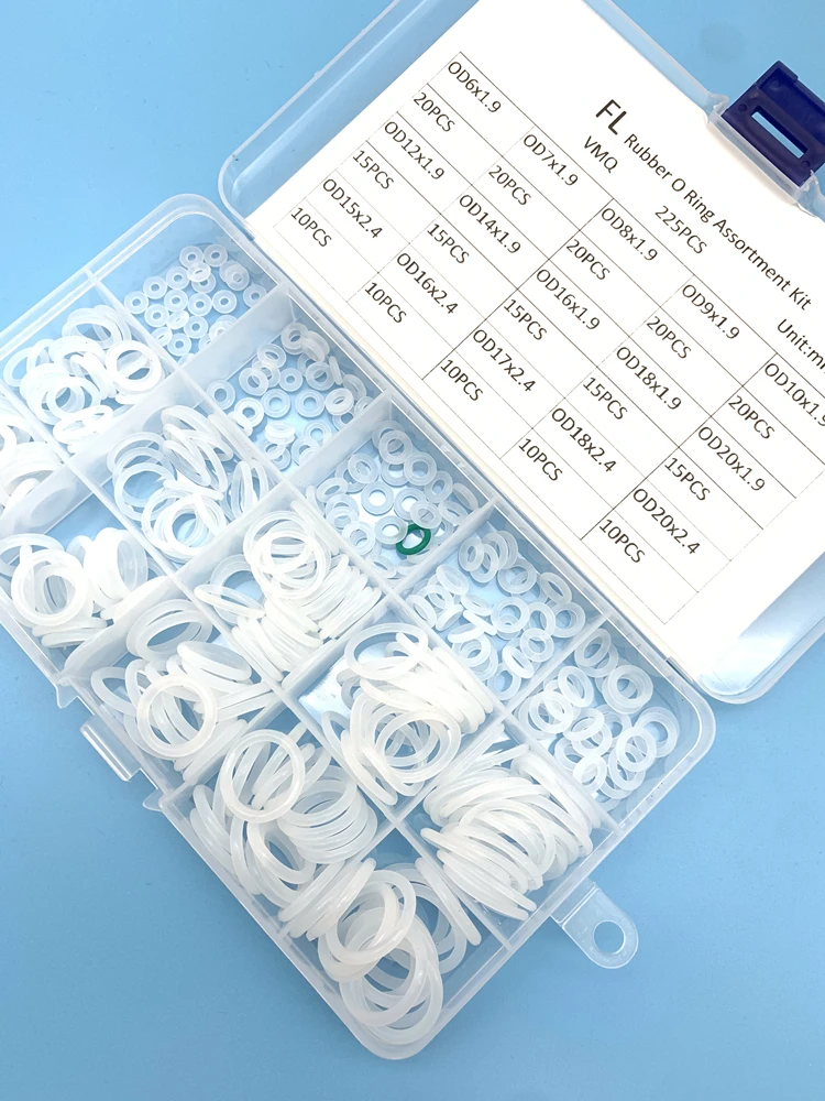 225 шт. уплотнительные кольца, Белый силиконовый уплотнительный уплотнитель VMQ, уплотнительные кольца, силиконовая шайба, резиновый набор, набор в ассортименте, набор, коробка, кольцо