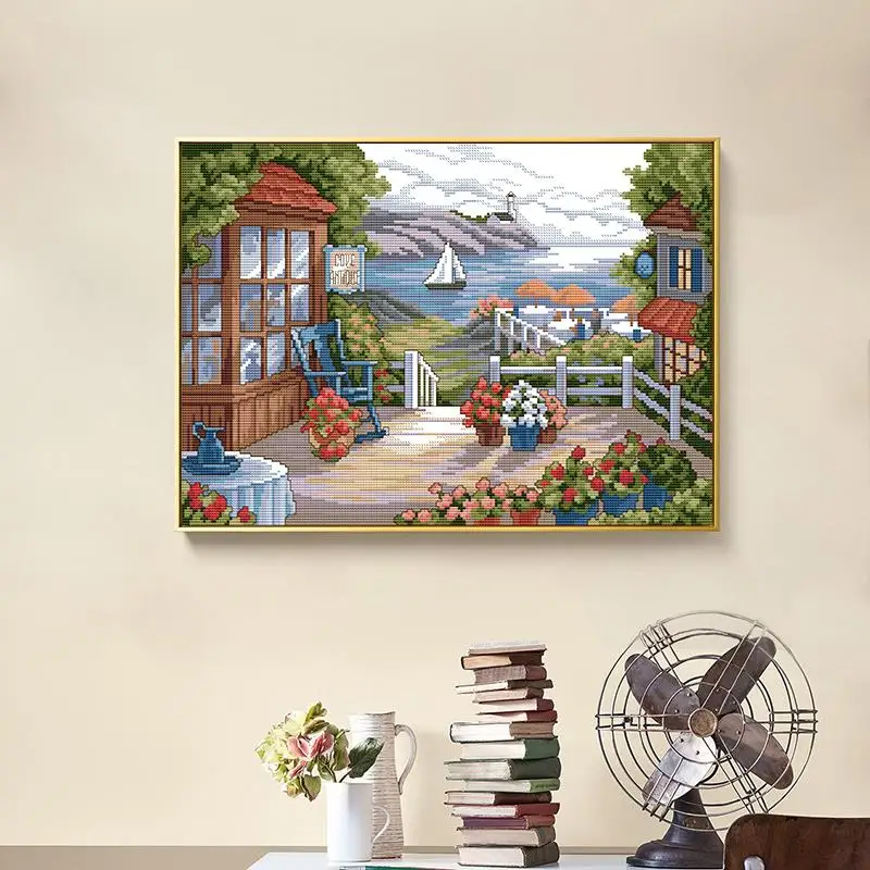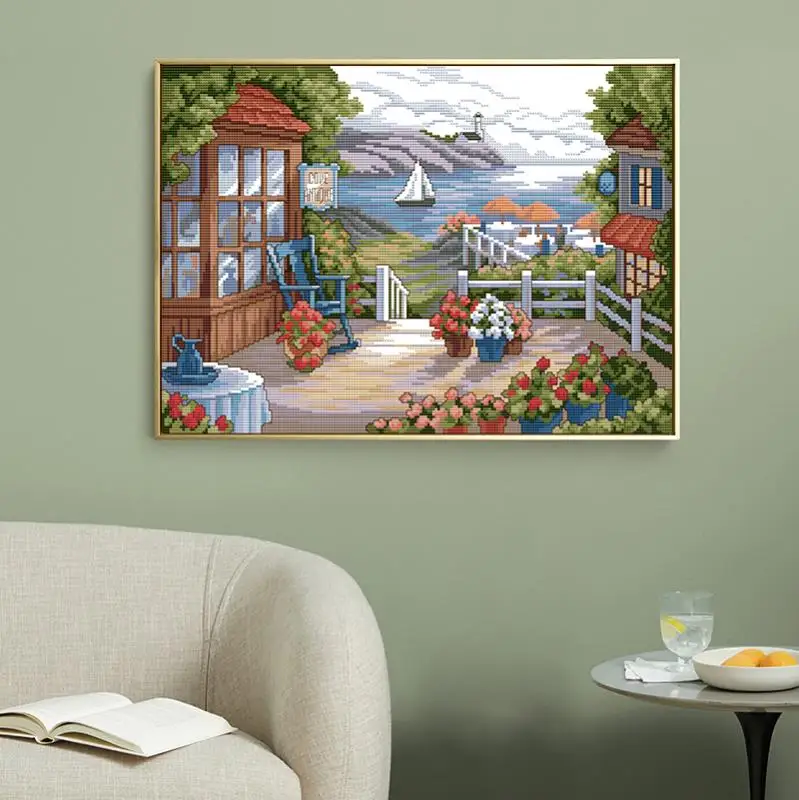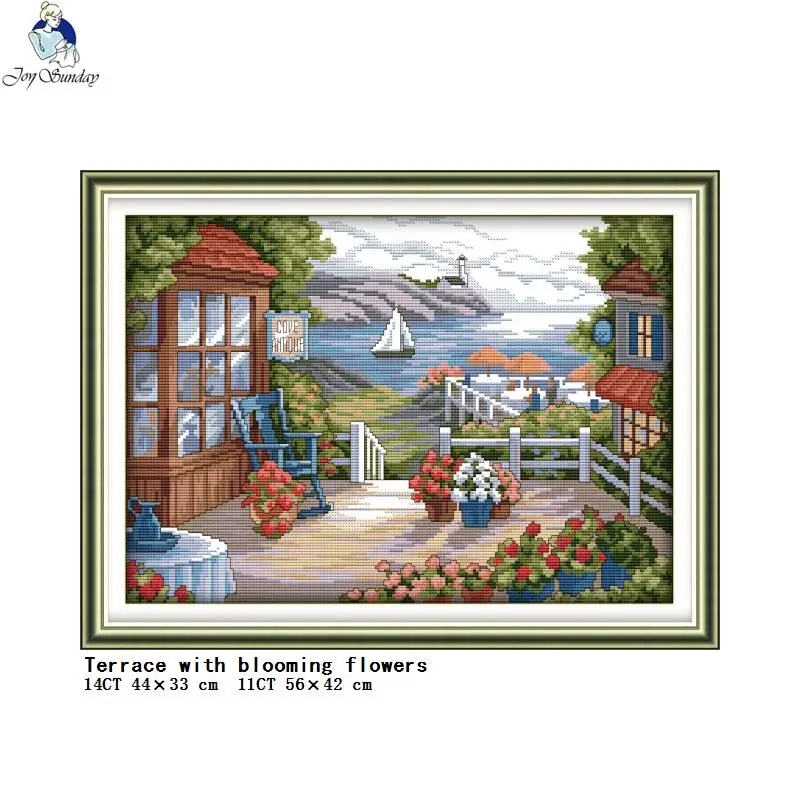 Терраса с цветущими цветами DIY декорации шаблон вышивка крестиком наборы 14CT 11CT вышивка набор украшение дома живопись