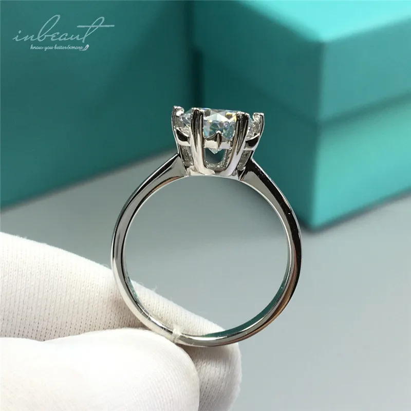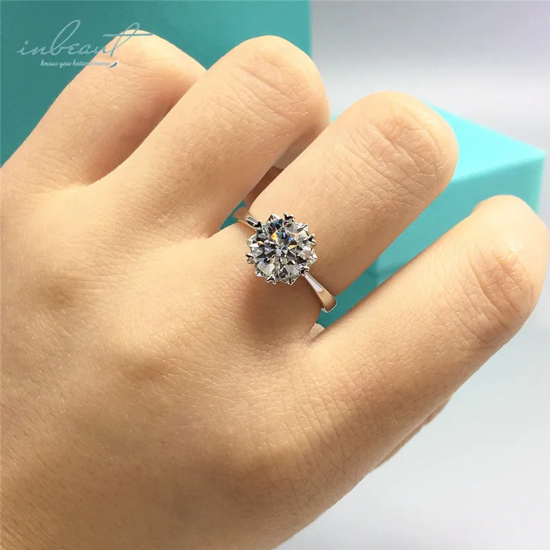 Круглое Сверкающее кольцо inbeaut с муассанитом, кольцо из 925 проб...