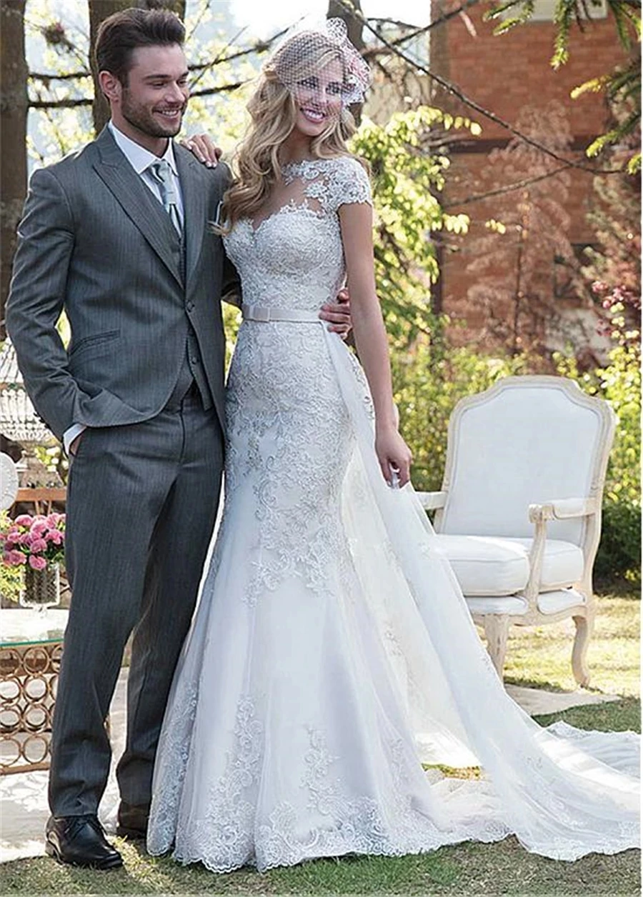 Элегантное Тюлевое свадебное платье-Русалка 2 в 1 со съемной юбкой ...