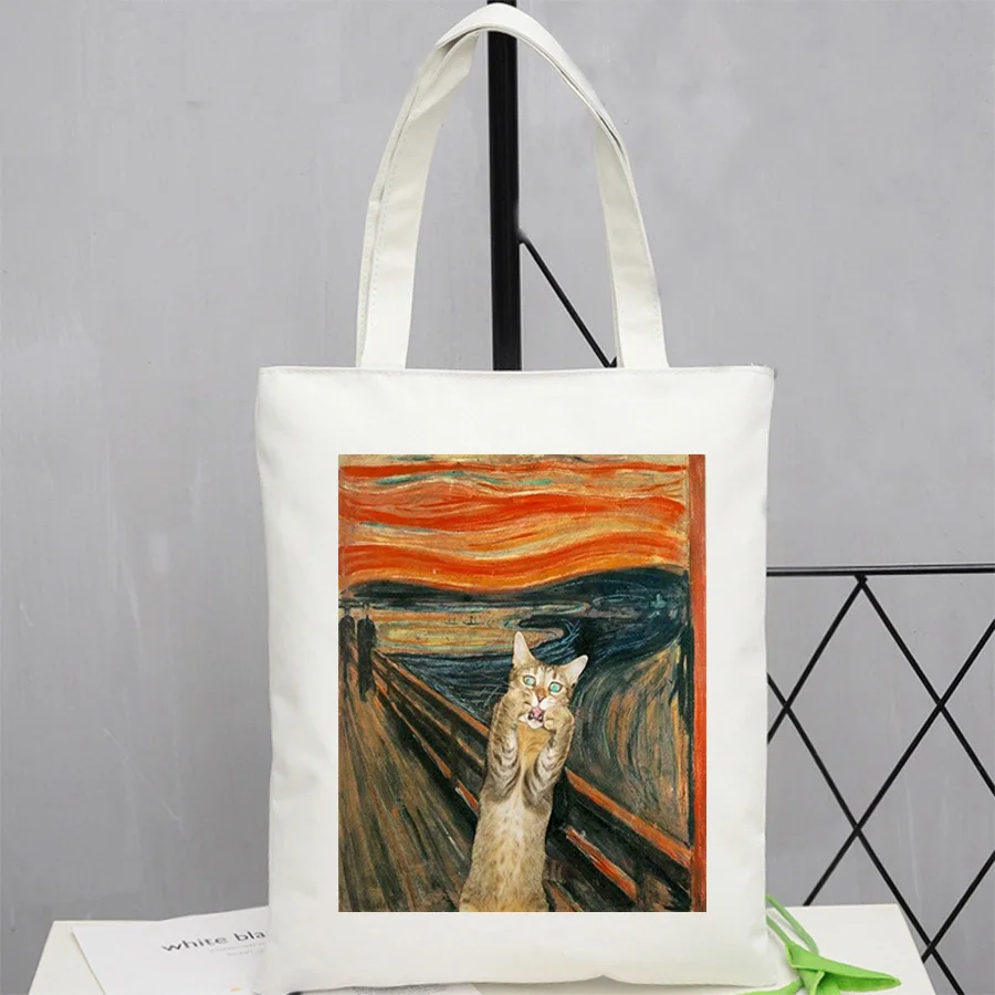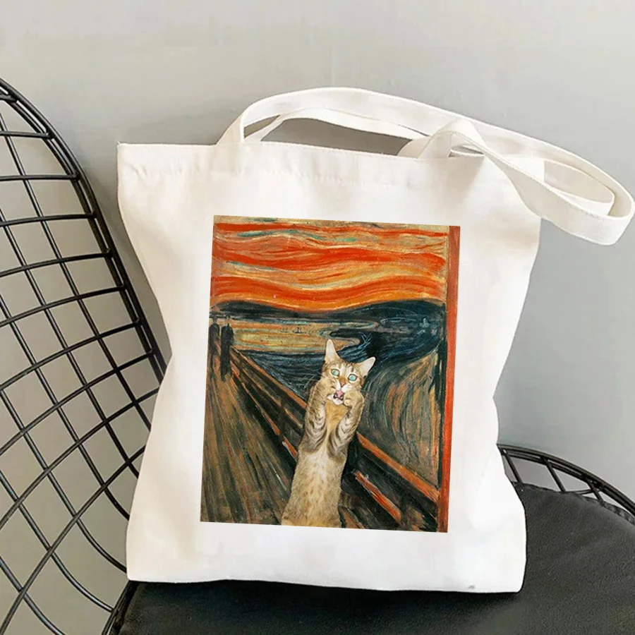 Холщовые сумки на плечо с рисунком черной кошки, в стиле хип-хоп