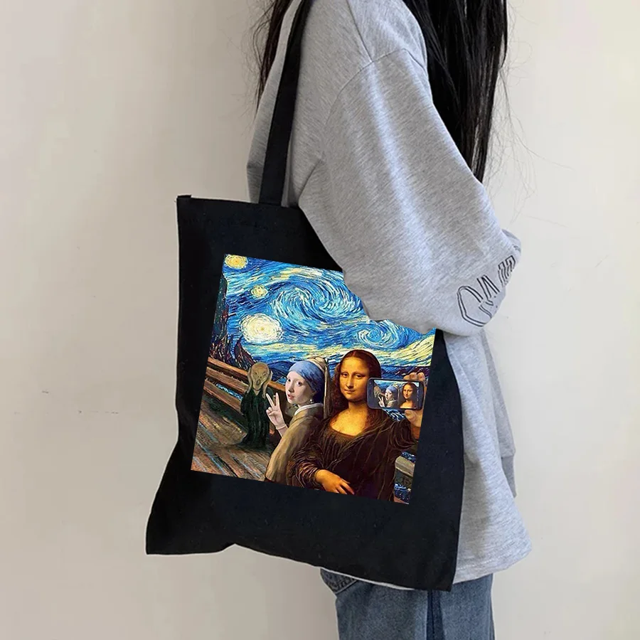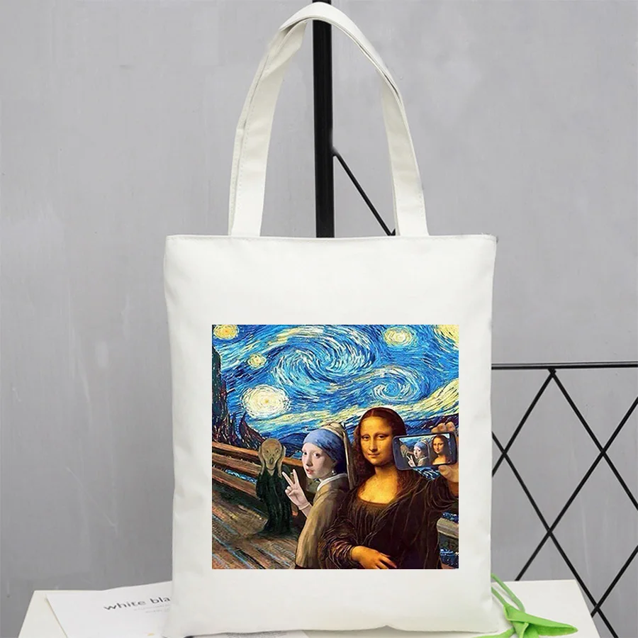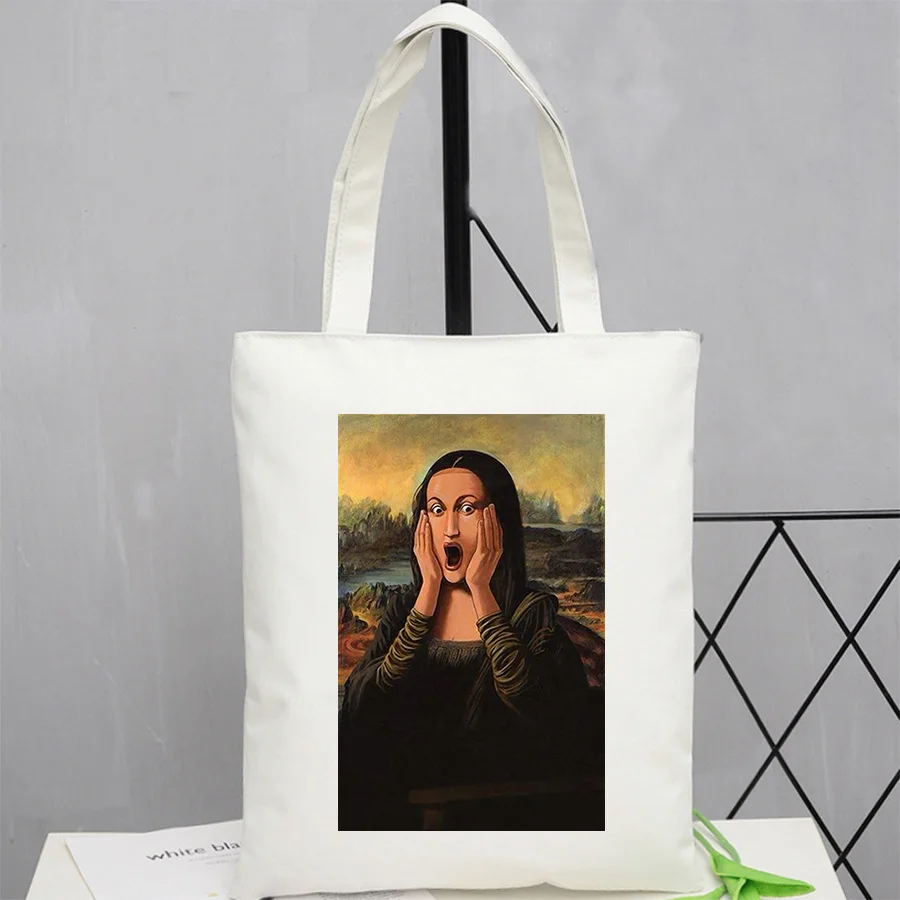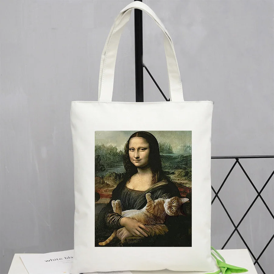Женская Хлопковая Сумка-тоут с рисунком из мф я и Мона Лиза