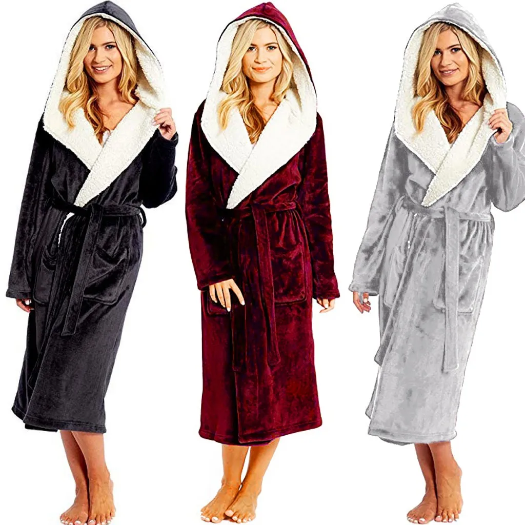 Зимний халат Womail, плюшевая удлиненная шаль, женский халат с длинным рукавом, халат, пальто, женское теплое пальто, домашняя одежда